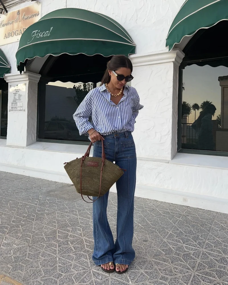 ETJ 2025 primavera da donna nuova moda europea-americana a righe manica lunga risvolto versione ampia camicia in popeline selezione multicolore