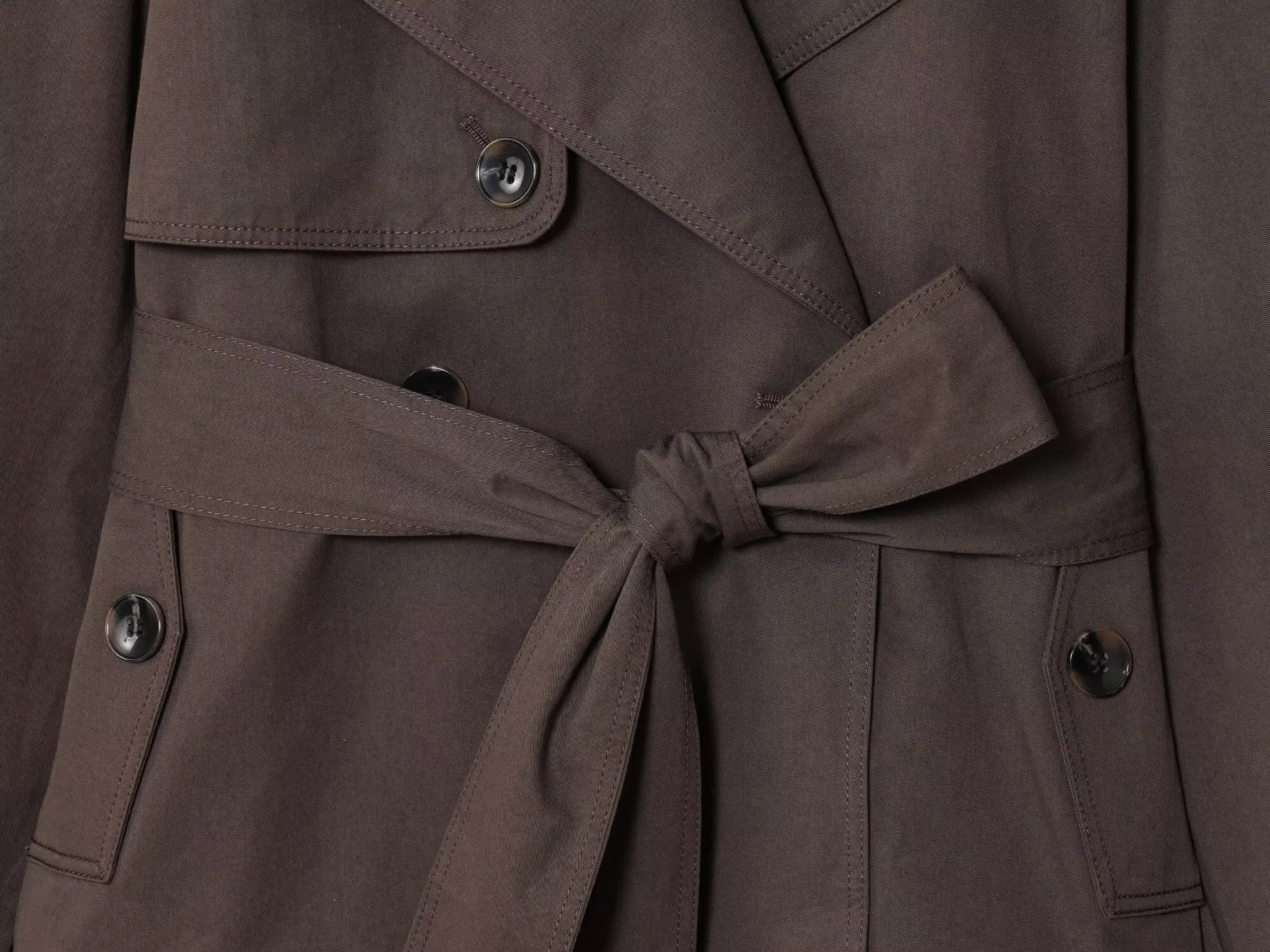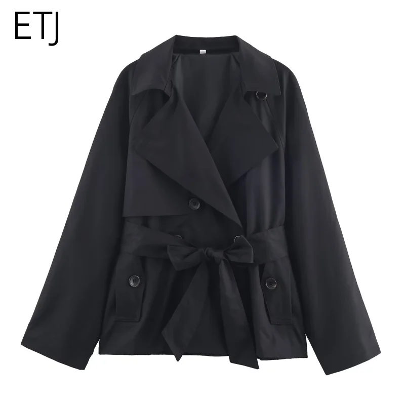 ETJ Autunno 2025 nuova collezione trench casual da donna con risvolto doppiopetto in stile britannico con cintura color Maillard