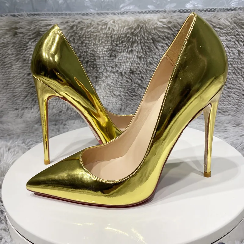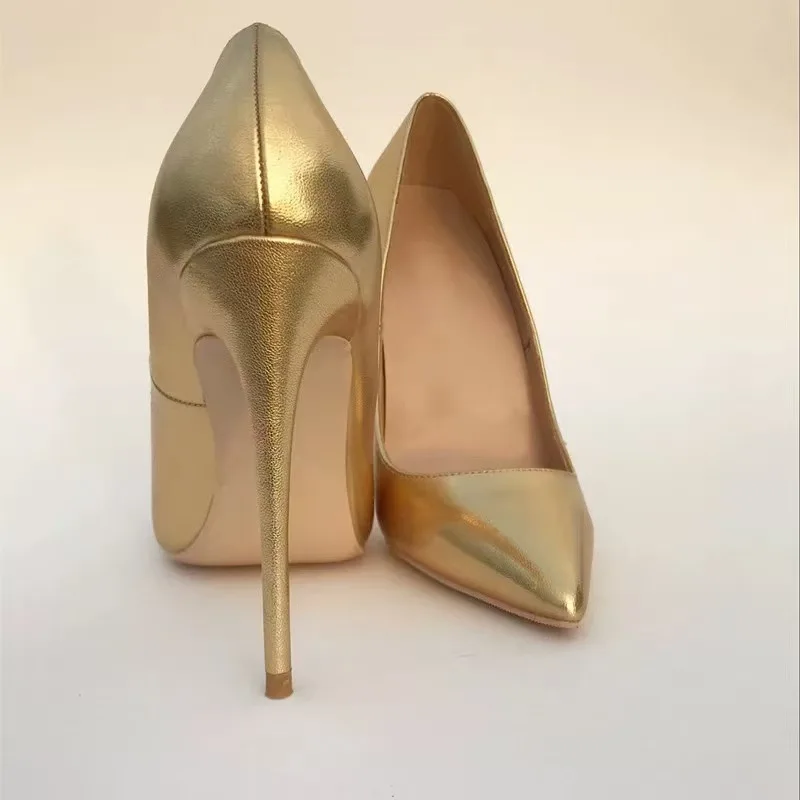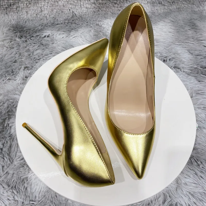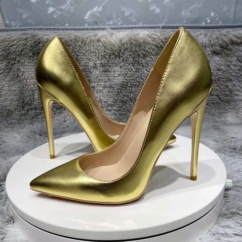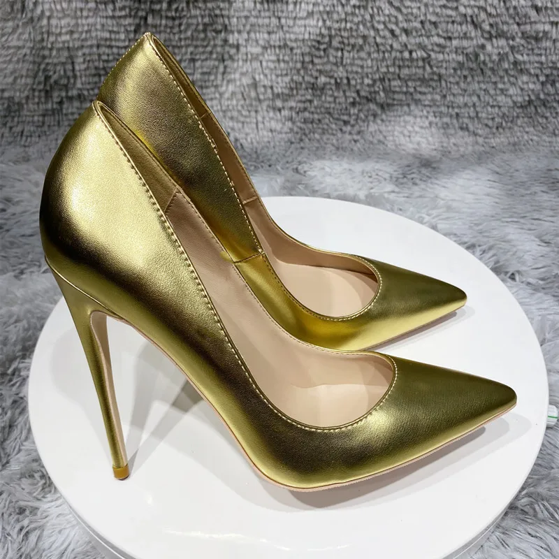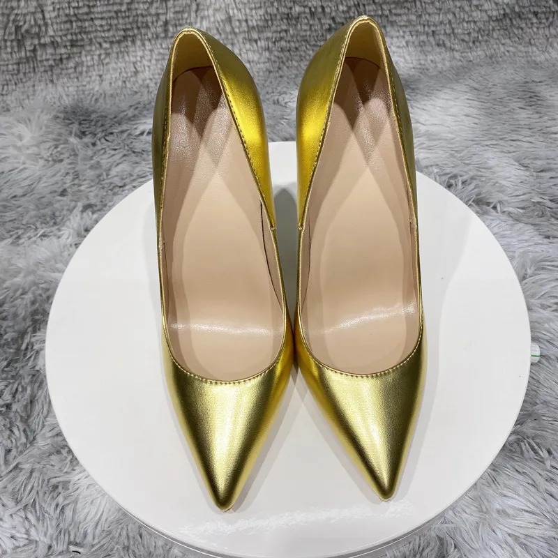 Europa e America 8CM 10CM 12CM Oro Bocca superficiale Tacchi alti Plus Size 46 Punta a punta Décolleté da donna Scarpe da banchetto per feste