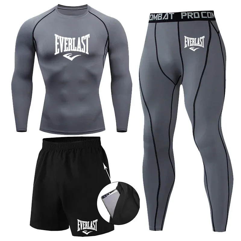 1 recensione per EVER/LAST Abiti da uomo neri Camicie a compressione Leggings Elasticità Fitness Palestra Corsa Traspirante Quick Dry Rashguard Set da uomo