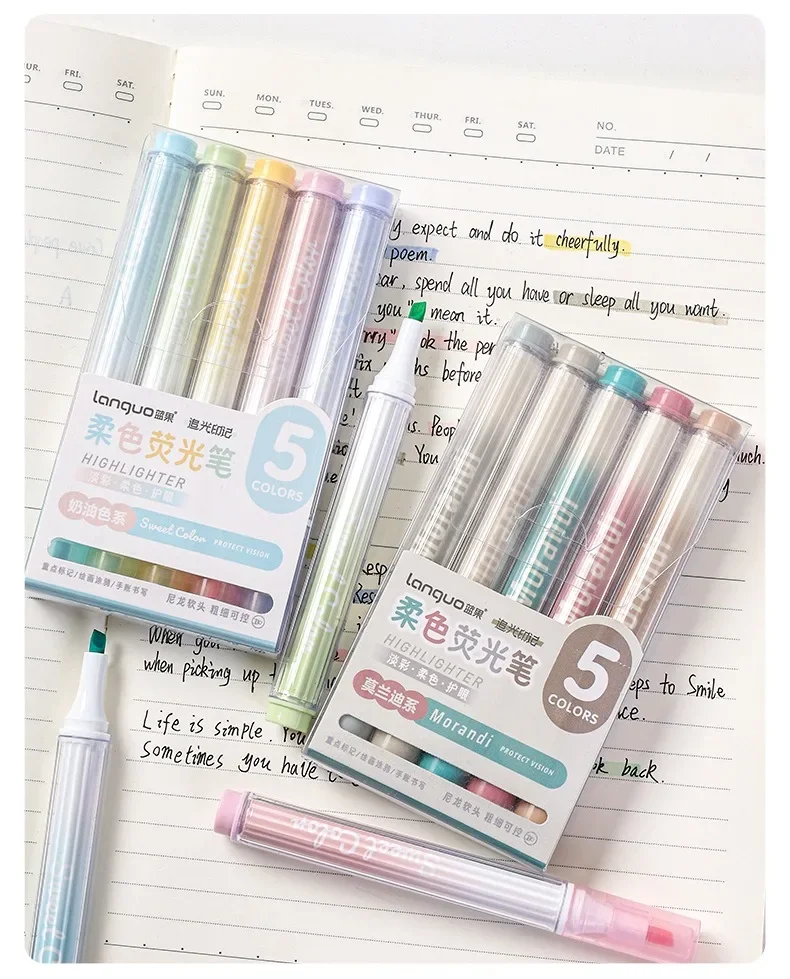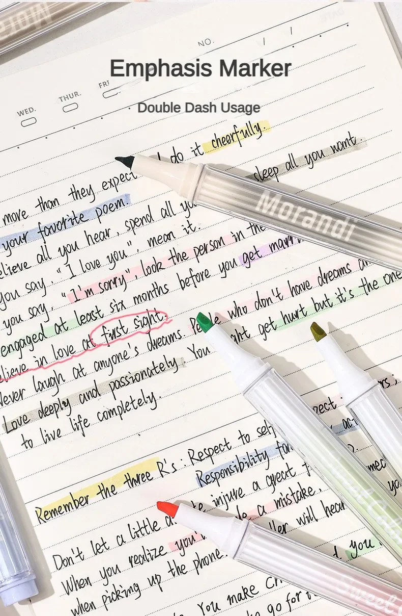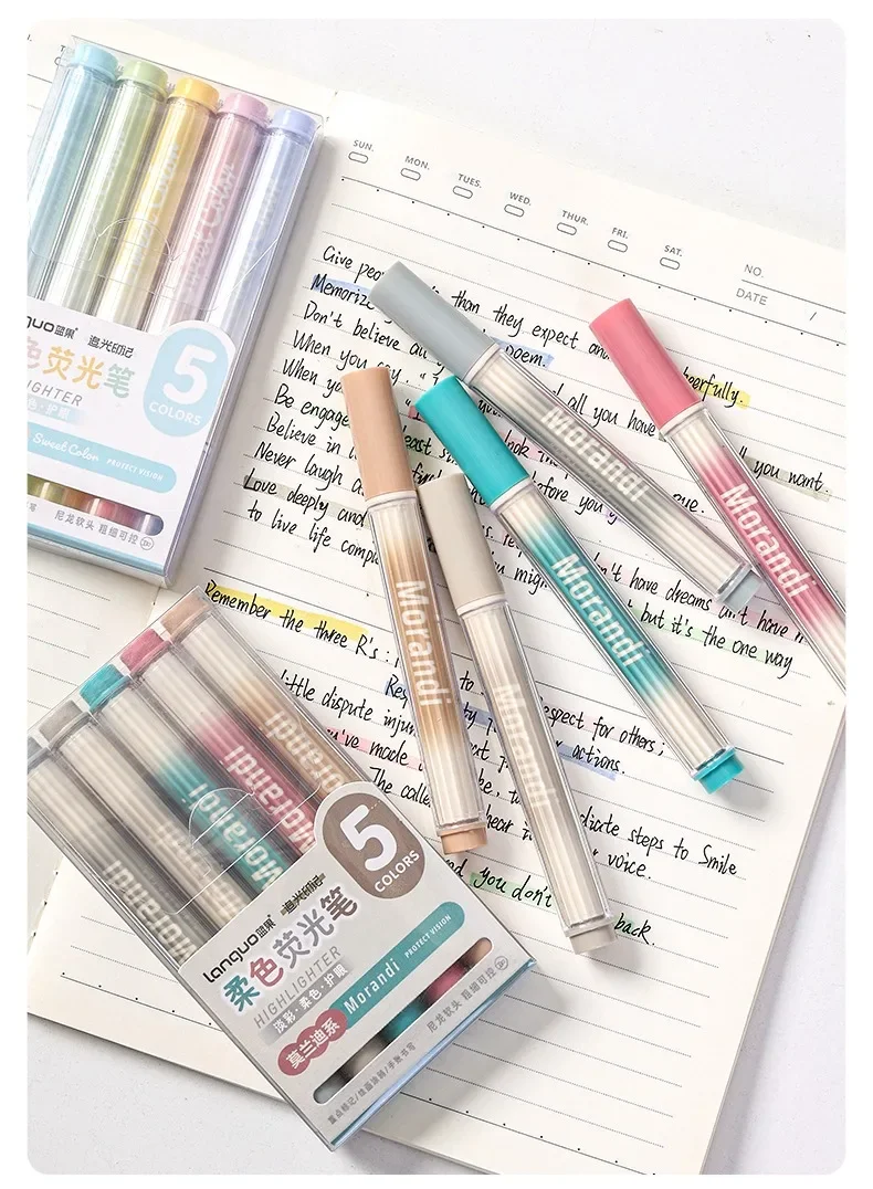 Evidenziatore da disegno Morandi a 5 colori Pittura per album di diario per studenti con pennino singolo/doppio Forniture per scrittura per ufficio scolastico di cancelleria