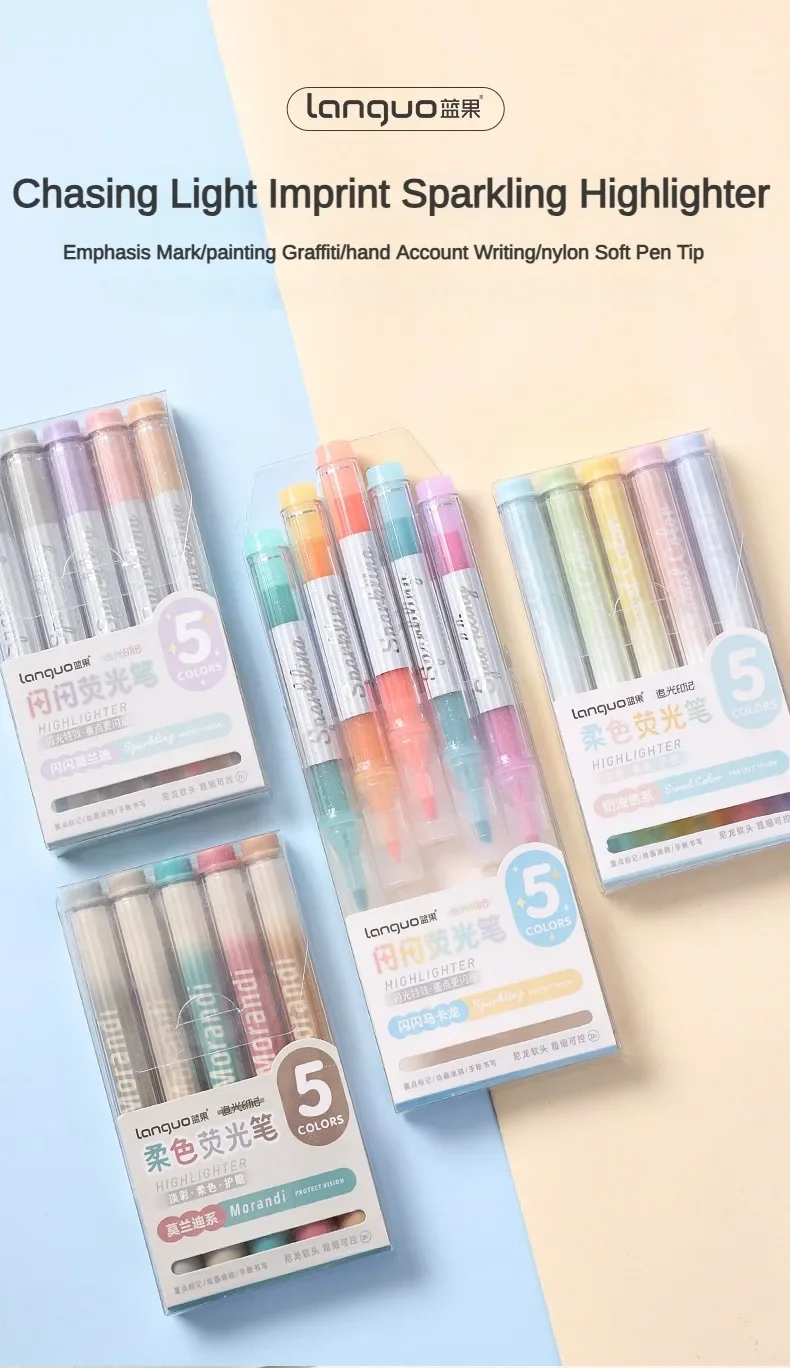 Lascia che ogni punto forte diventi una dichiarazione brillante e ogni scarabocchio venga riempita con colori personalizzati.La serie di pennarelli fluorescenti scintillanti di Languo rende il tuo viaggio di apprendimento e creatività ancora più emozionante.Unisciti a noi adesso ed esplora insieme il fascino infinito del colore, intraprendendo il tuo viaggio splendente!