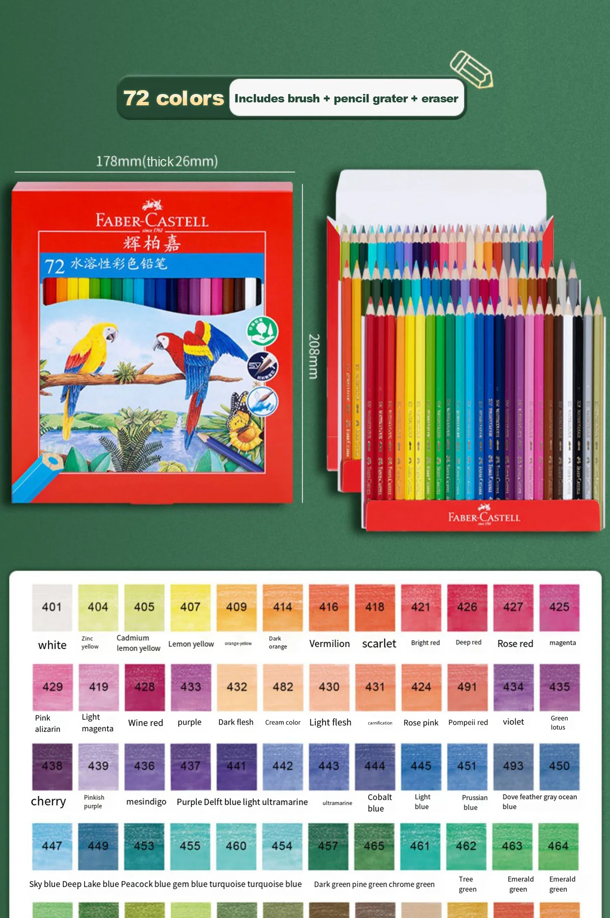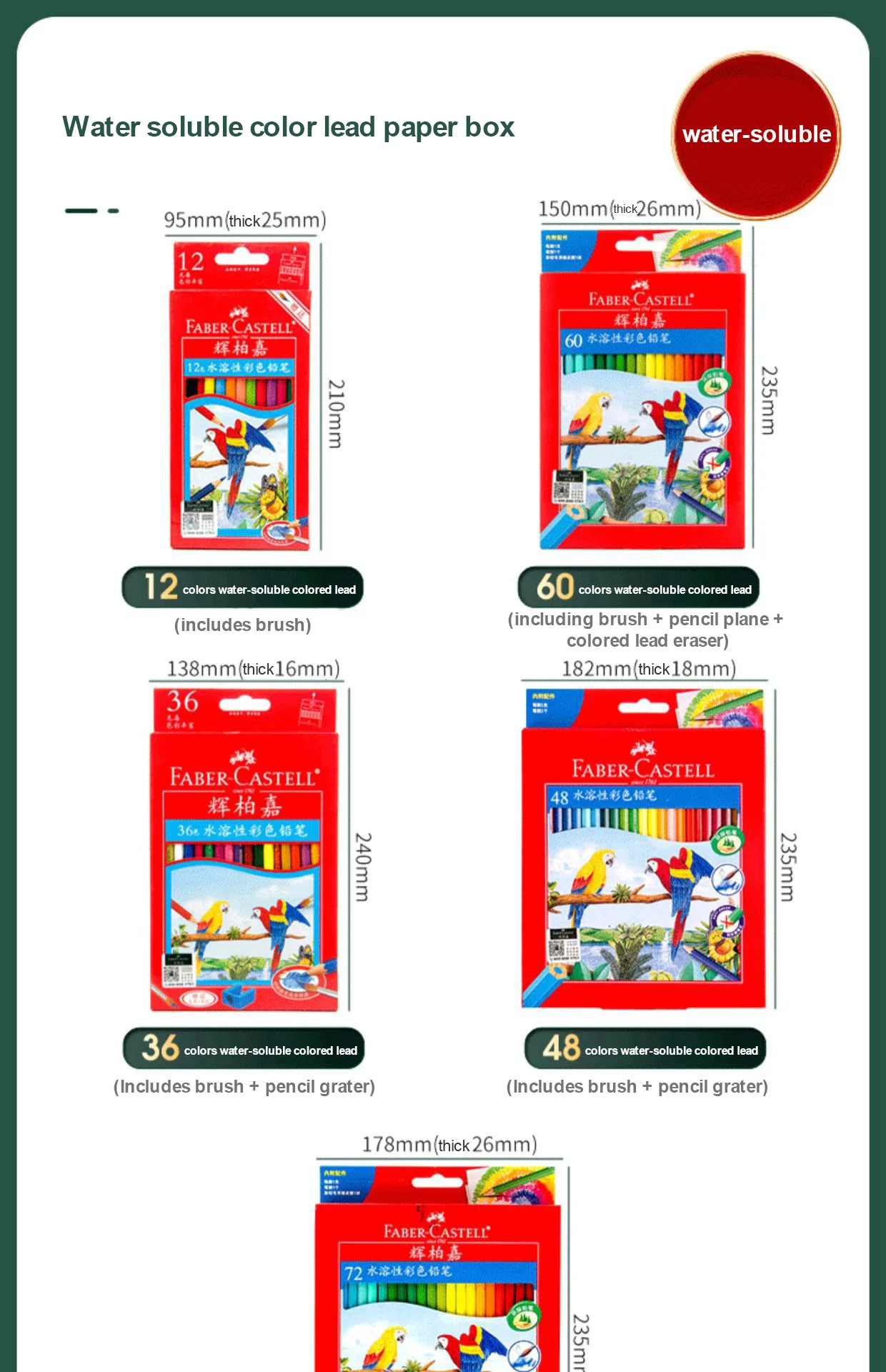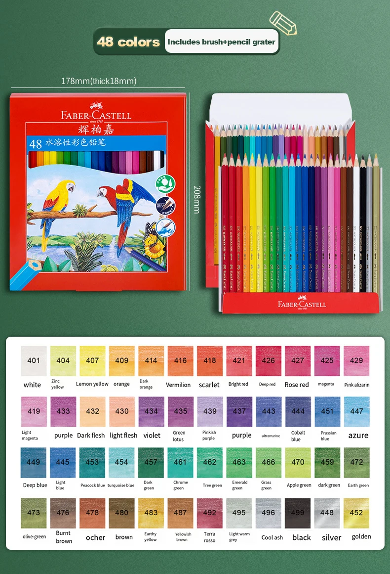 Faber Castell 48/60/72/100 Colori Matite Colorate Grasse Set Legno Matite Colorate Professionali Piombo Artista Pittura Disegno Schizzo