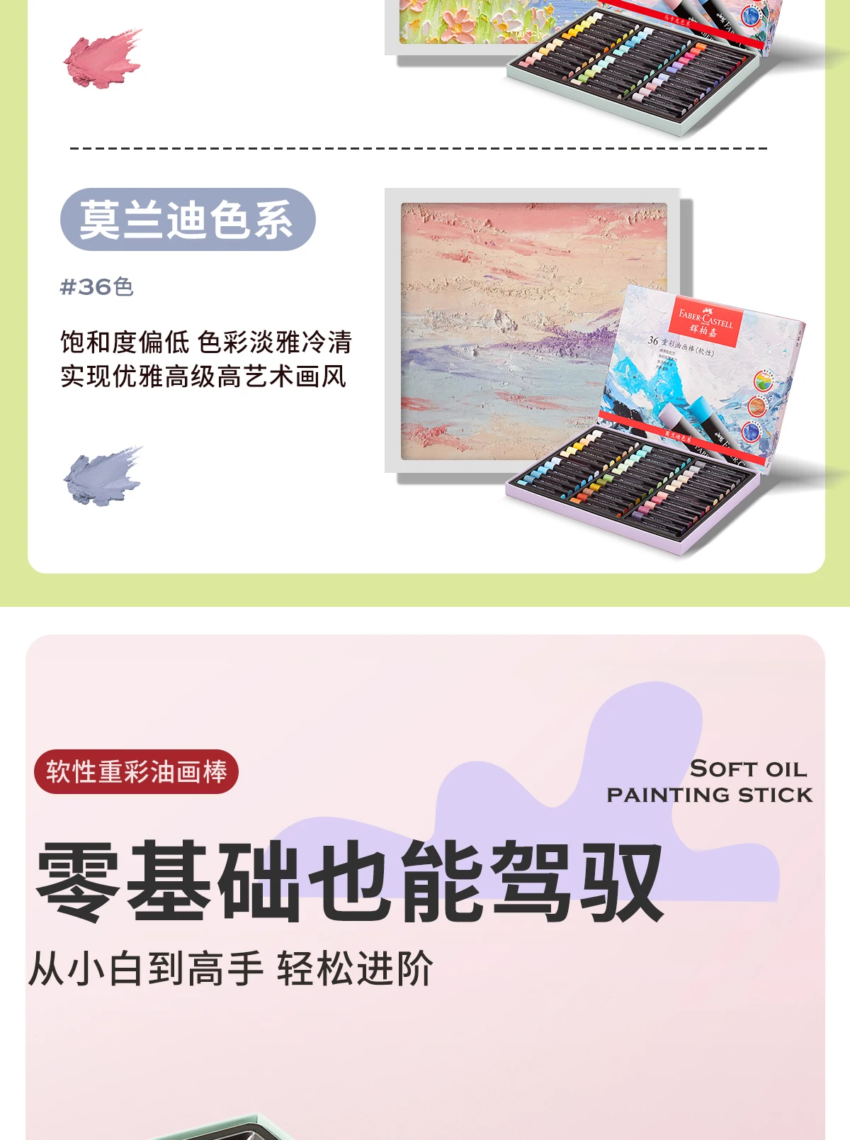 FABER CASTELL Artist Pastelli ad olio morbidi 24/36/48 Colori vivaci e cremosi Pastelli professionali Set per pittura piatta, miscelazione