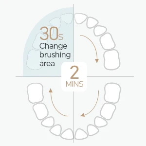 Costruito in 2 minuti smart timer con pause a intervalli che ti ricordano di cambiare l’area di spazzolatura ogni 30 secondi per incoraggiare una sana abitudine di spazzolatura. Si spegne automaticamente quando mancano due minuti.