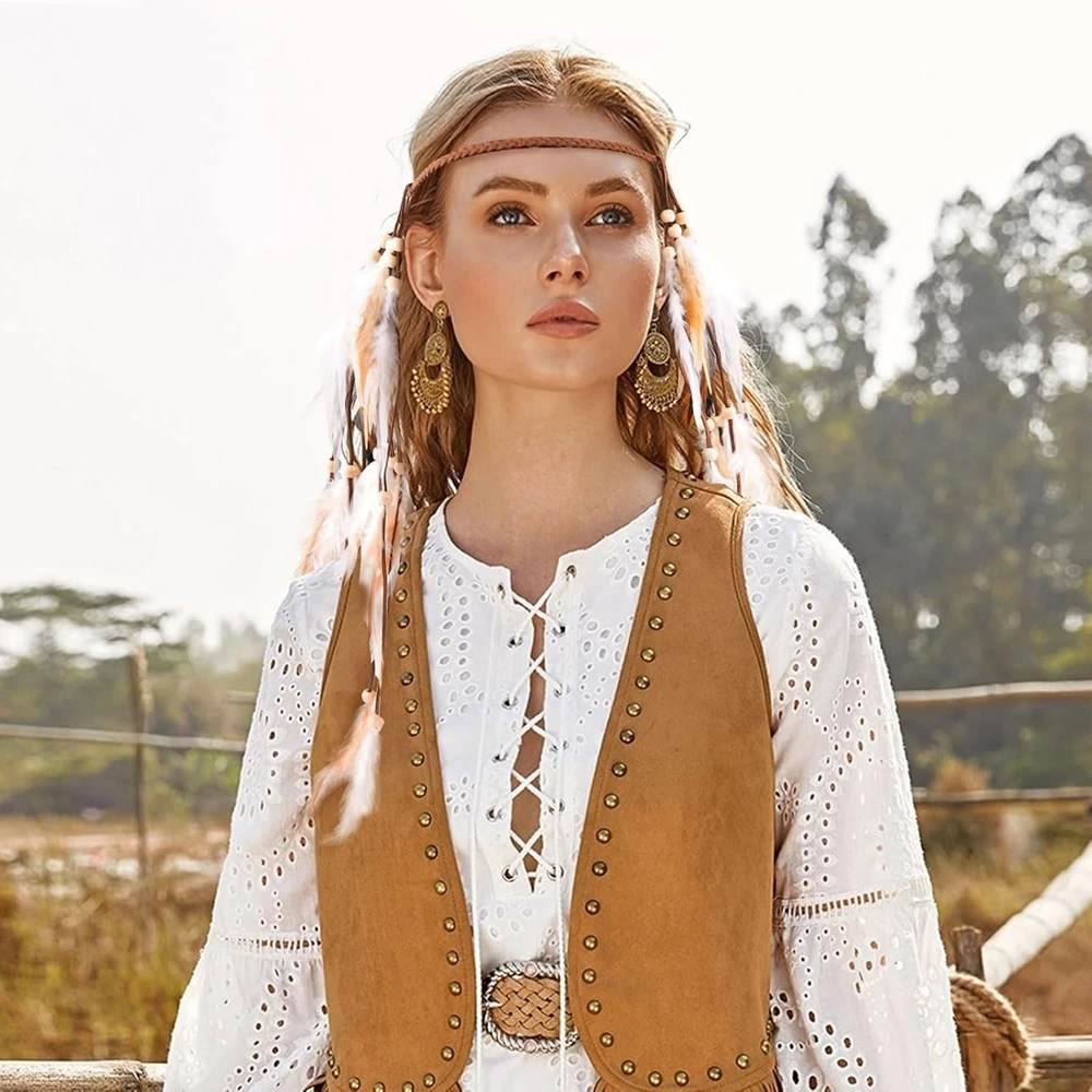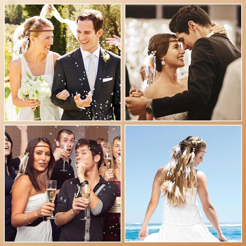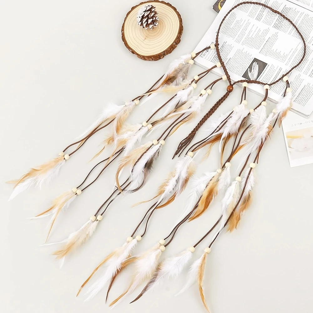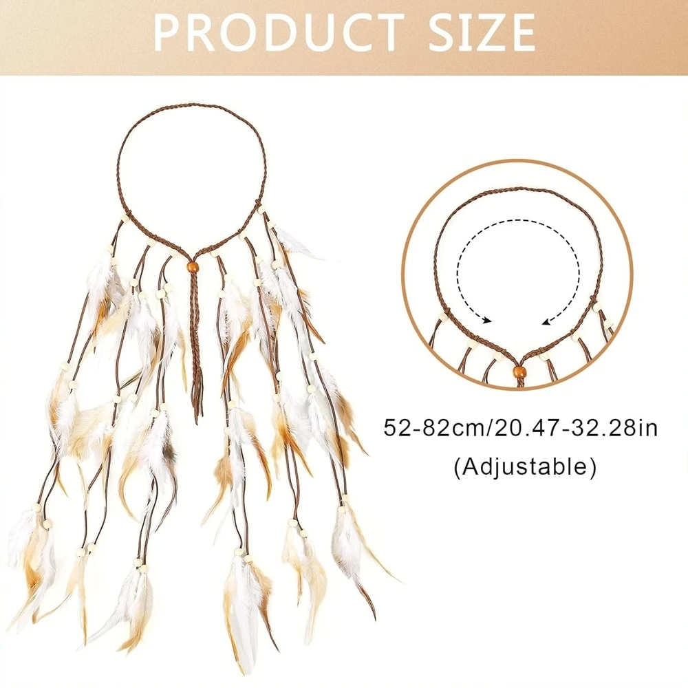 Fascia per capelli bohémien hippie con nappe lunghe e piume, fascia per capelli da fata, accessori per capelli per costume da festa di nozze da donnaDisponibilità: 13 disponibili
