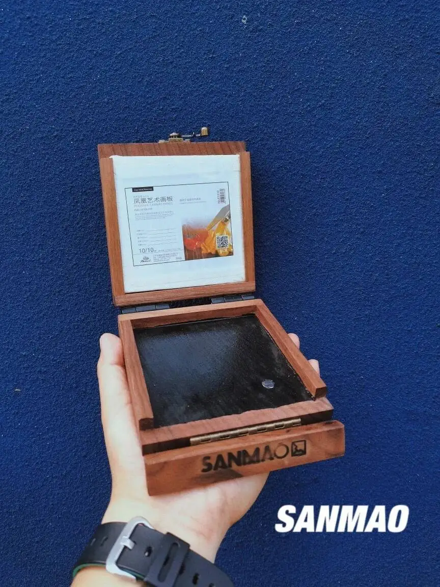 Fatto a mano Mini carino portatile in legno di noce nero scatola di pittura a olio strumenti di pittura di palma 1Fatto a mano Mini carino portatile in legno di noce nero scatola di pittura a olio strumenti di pittura di palma