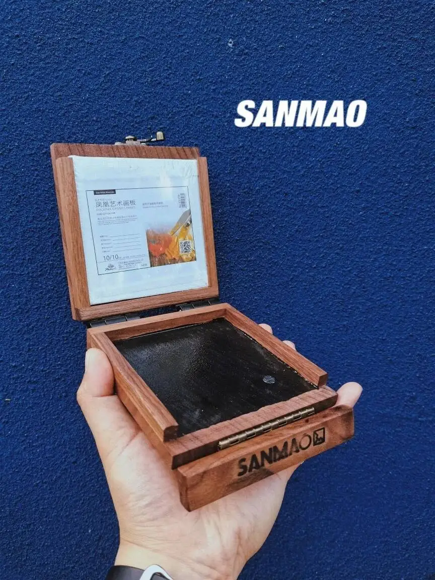 Fatto a mano Mini carino portatile in legno di noce nero scatola di pittura a olio strumenti di pittura di palma