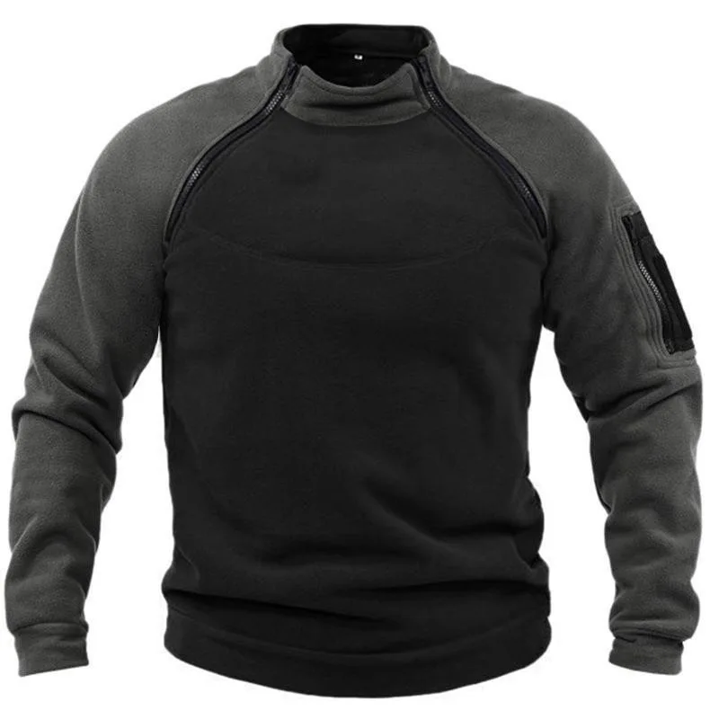 Felpa casual da uomo con colletto rialzato con maniche bicolore, calda e resistente per uso esterno, camicia pullover da uomo