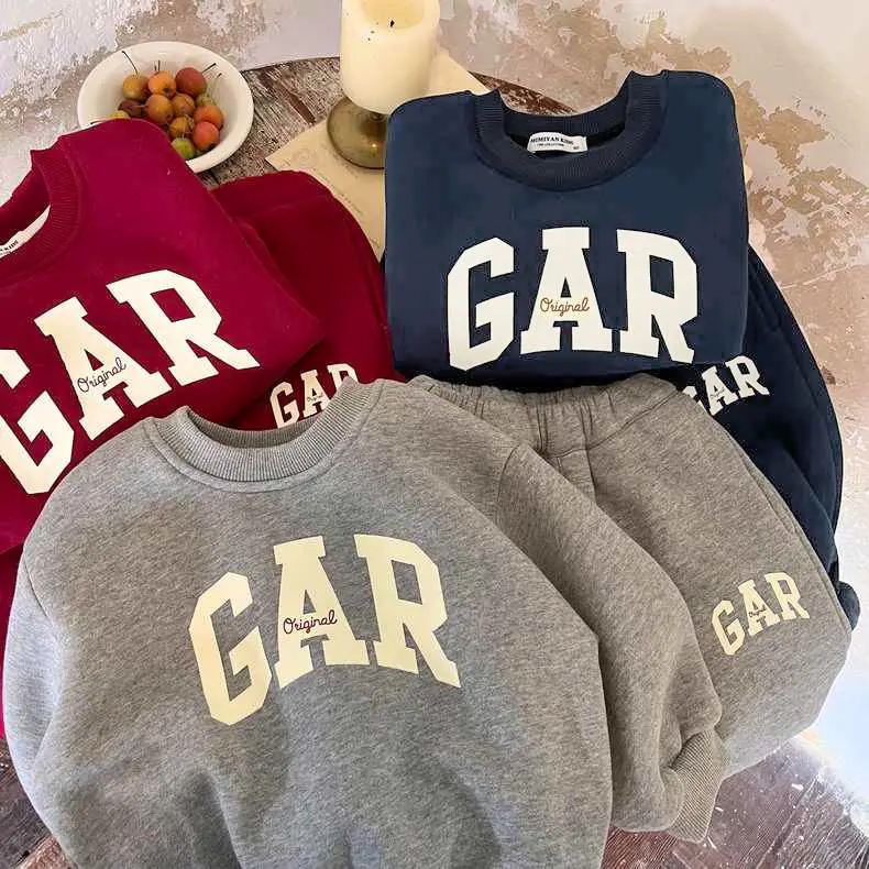 Felpa con cappuccio girocollo autunno e inverno per bambini, abito casual, set da due pezzi a maniche lunghe invernale per uomo e donna