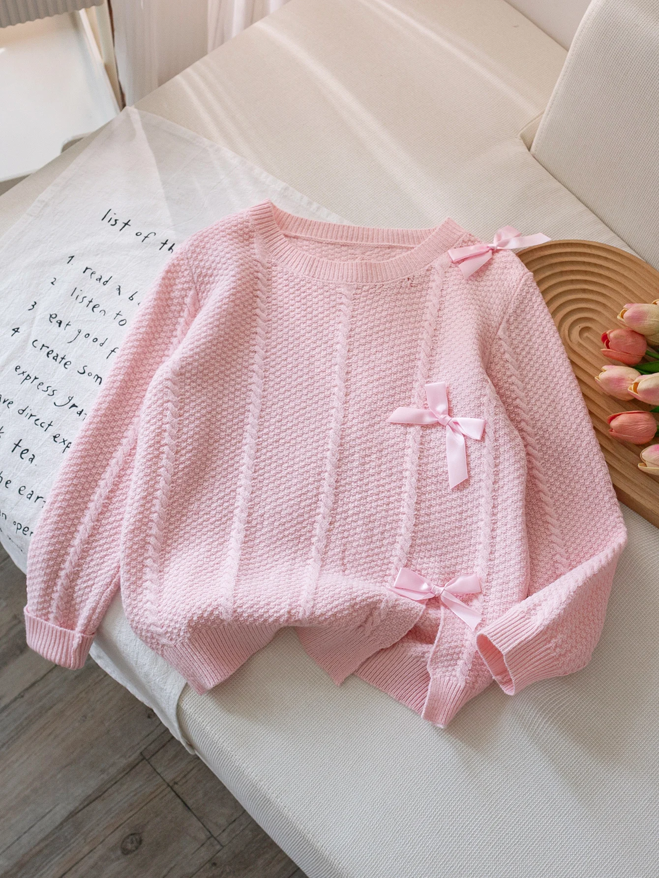 Felpa con cappuccio lavorata a maglia con fiocco in tinta unita stile carino da ragazza adatta per le vacanze quotidiane primavera, autunno, inverno