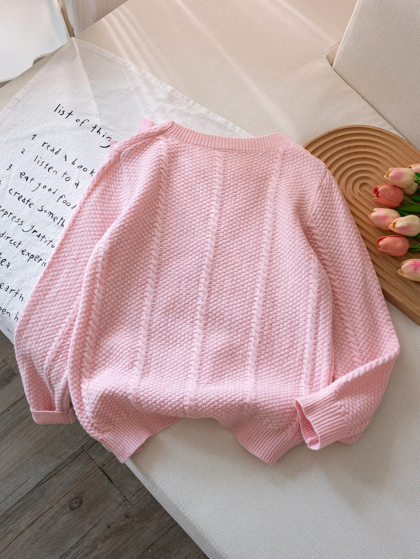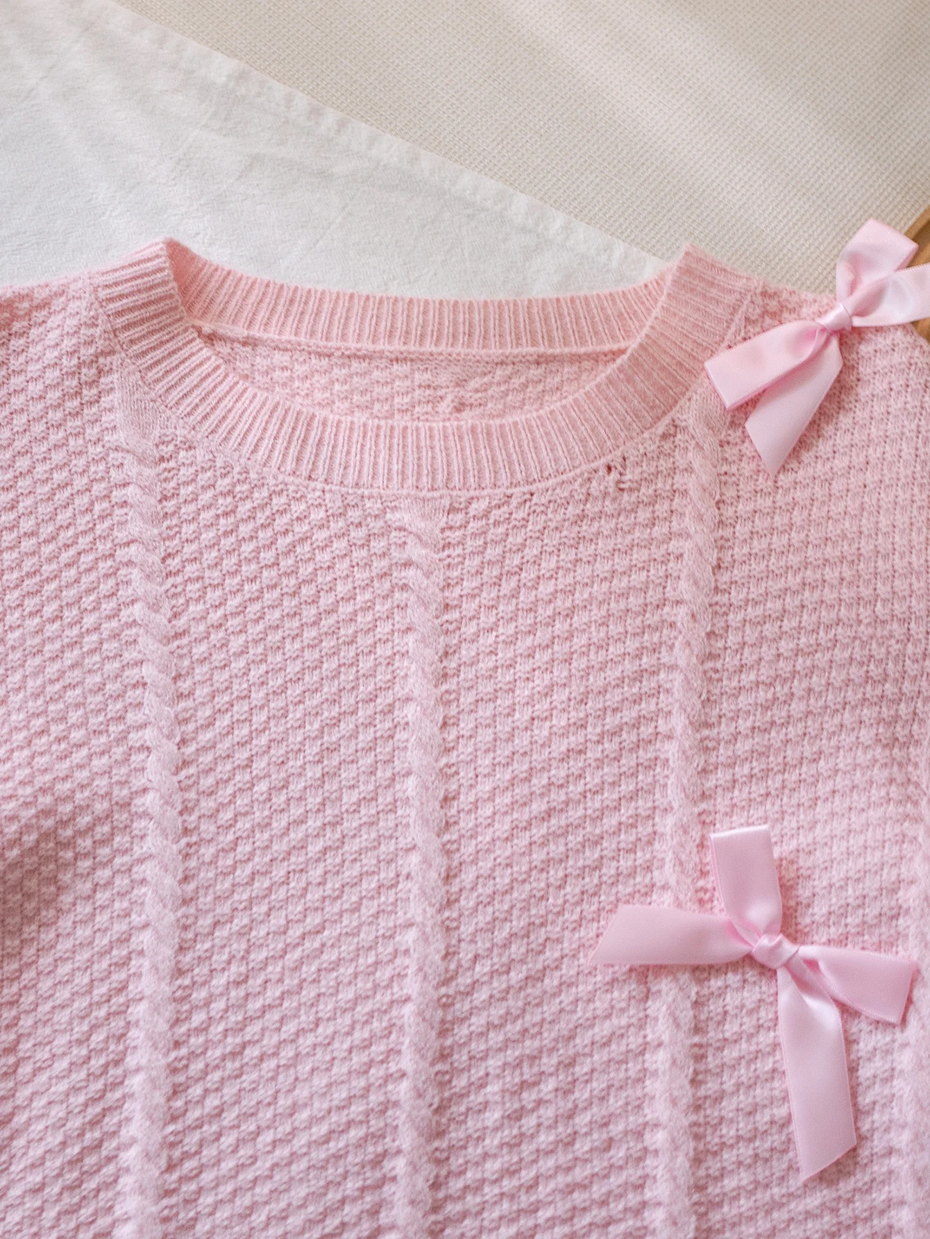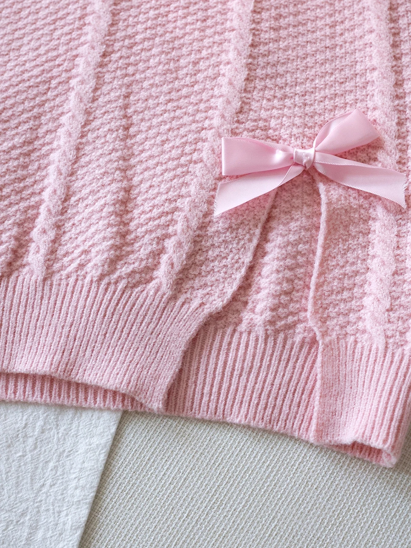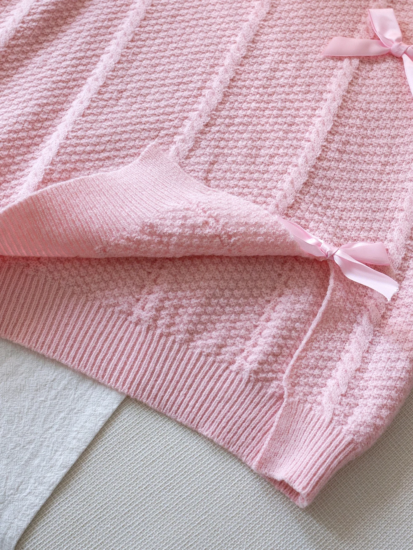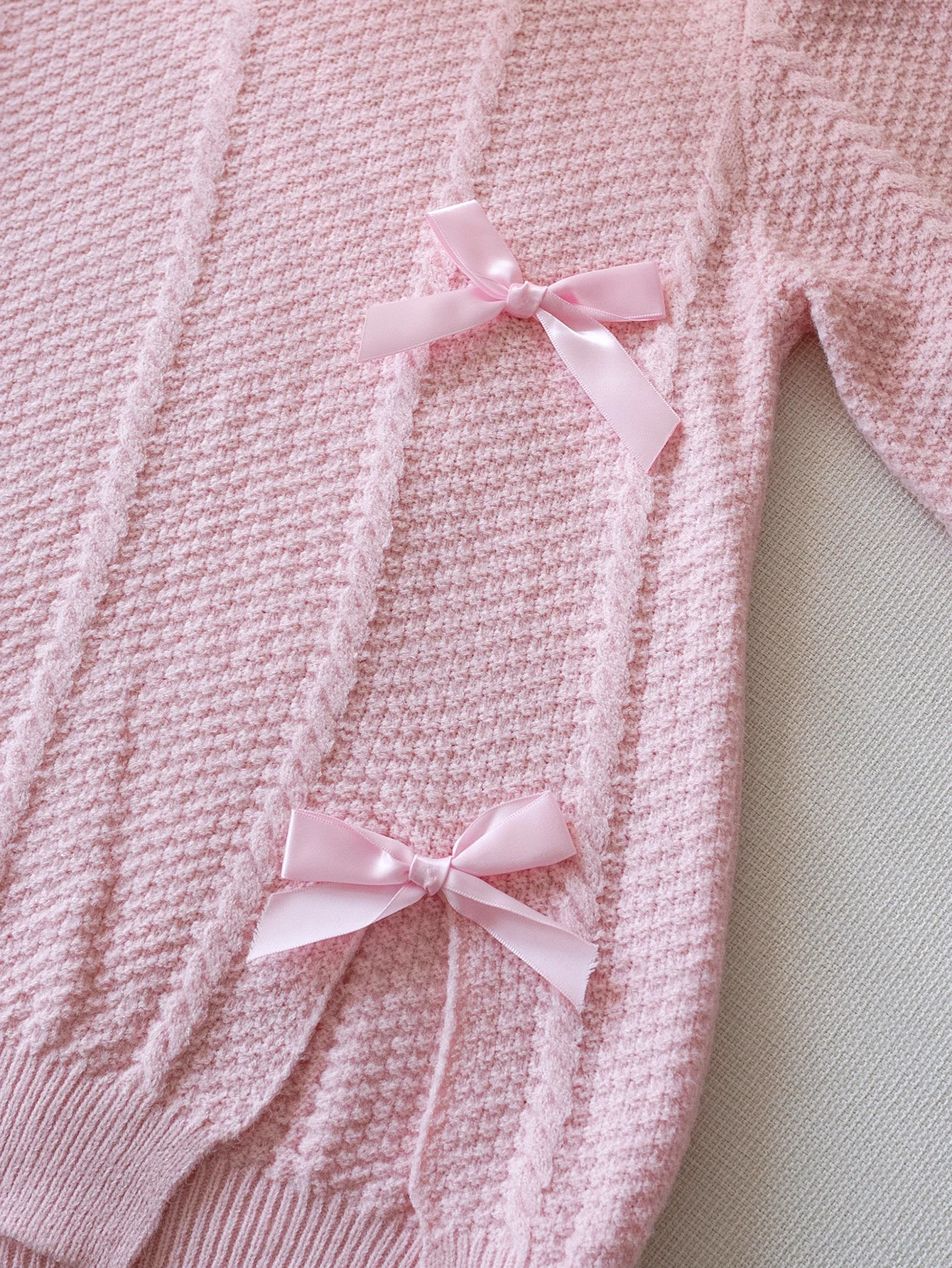Felpa con cappuccio lavorata a maglia con fiocco in tinta unita stile carino da ragazza adatta per le vacanze quotidiane primavera, autunno, inverno