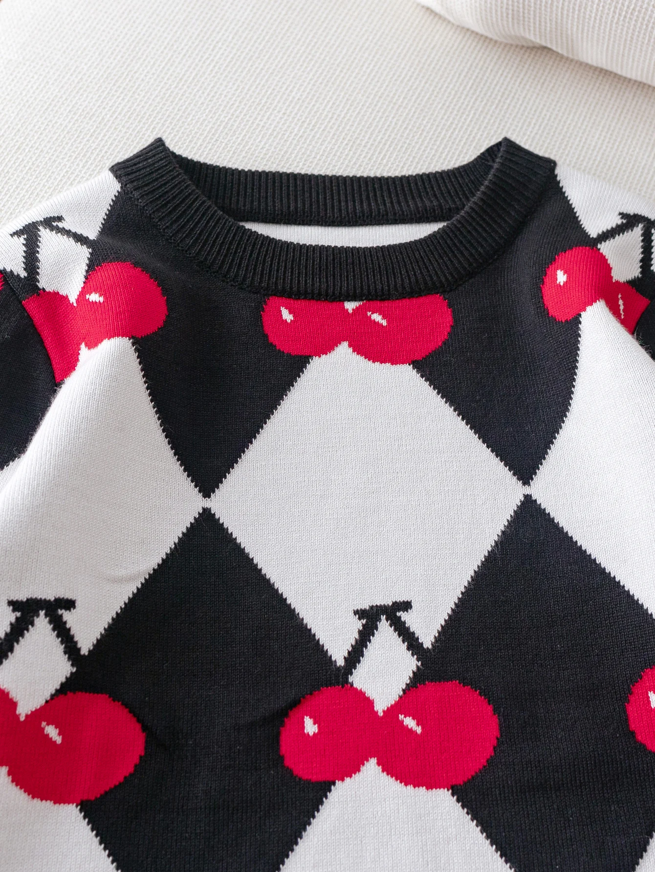 Felpa con cappuccio lavorata a maglia maglione ciliegia a quadretti color block stile carino da ragazza adatta per le vacanze quotidiane primavera autunno inverno