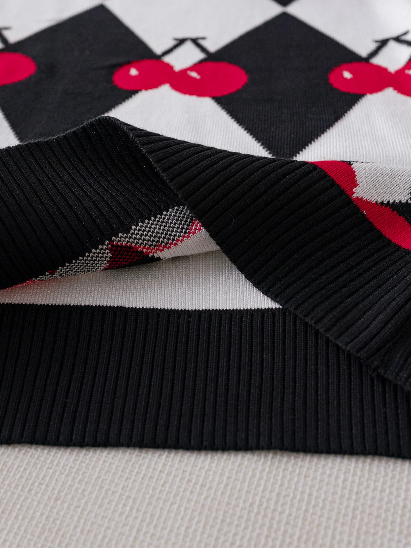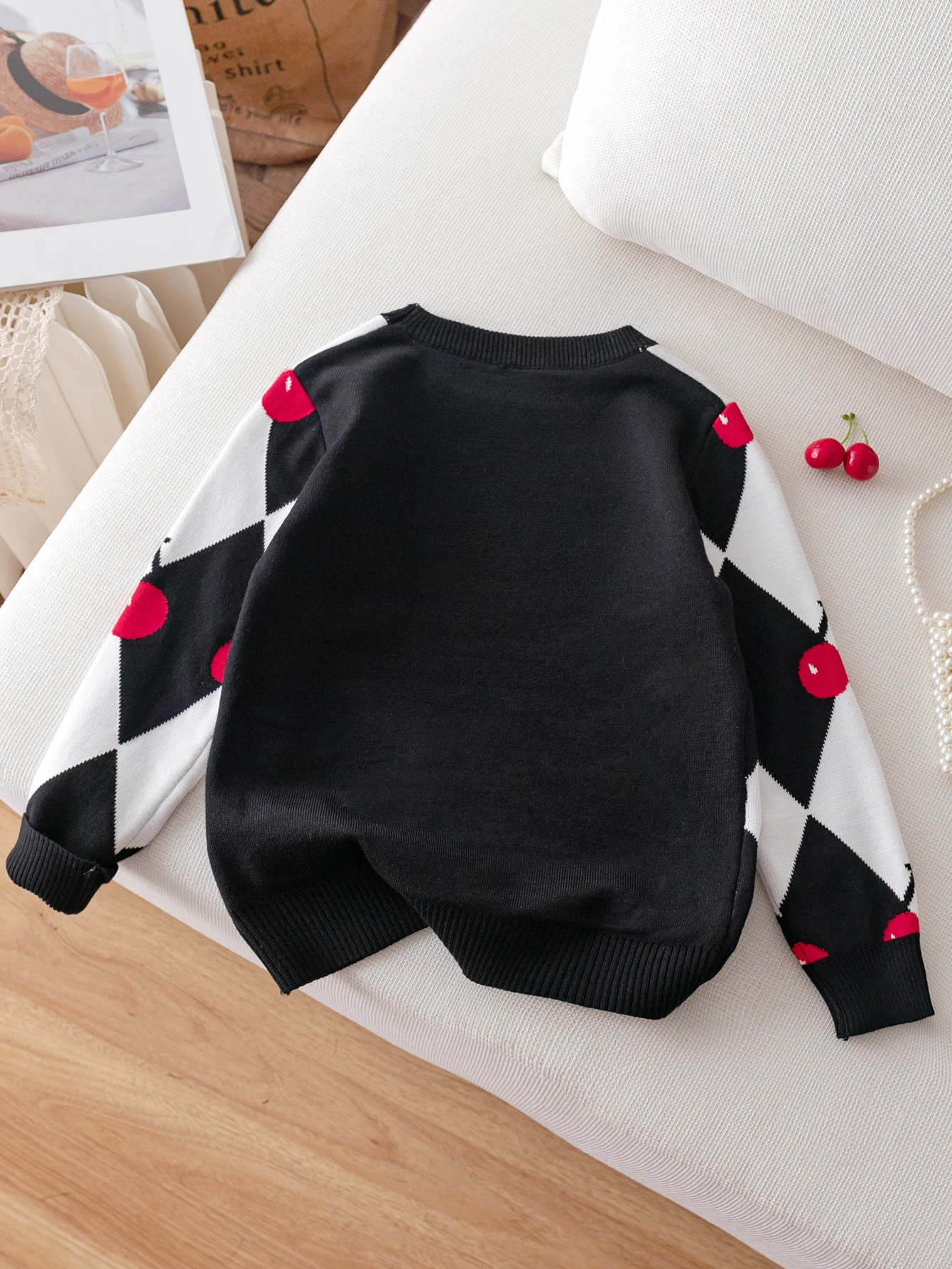 Felpa con cappuccio lavorata a maglia maglione ciliegia a quadretti color block stile carino da ragazza adatta per le vacanze quotidiane primavera autunno inverno 1Felpa con cappuccio lavorata a maglia maglione ciliegia a quadretti color block stile carino da ragazza adatta per le vacanze quotidiane primavera autunno inverno