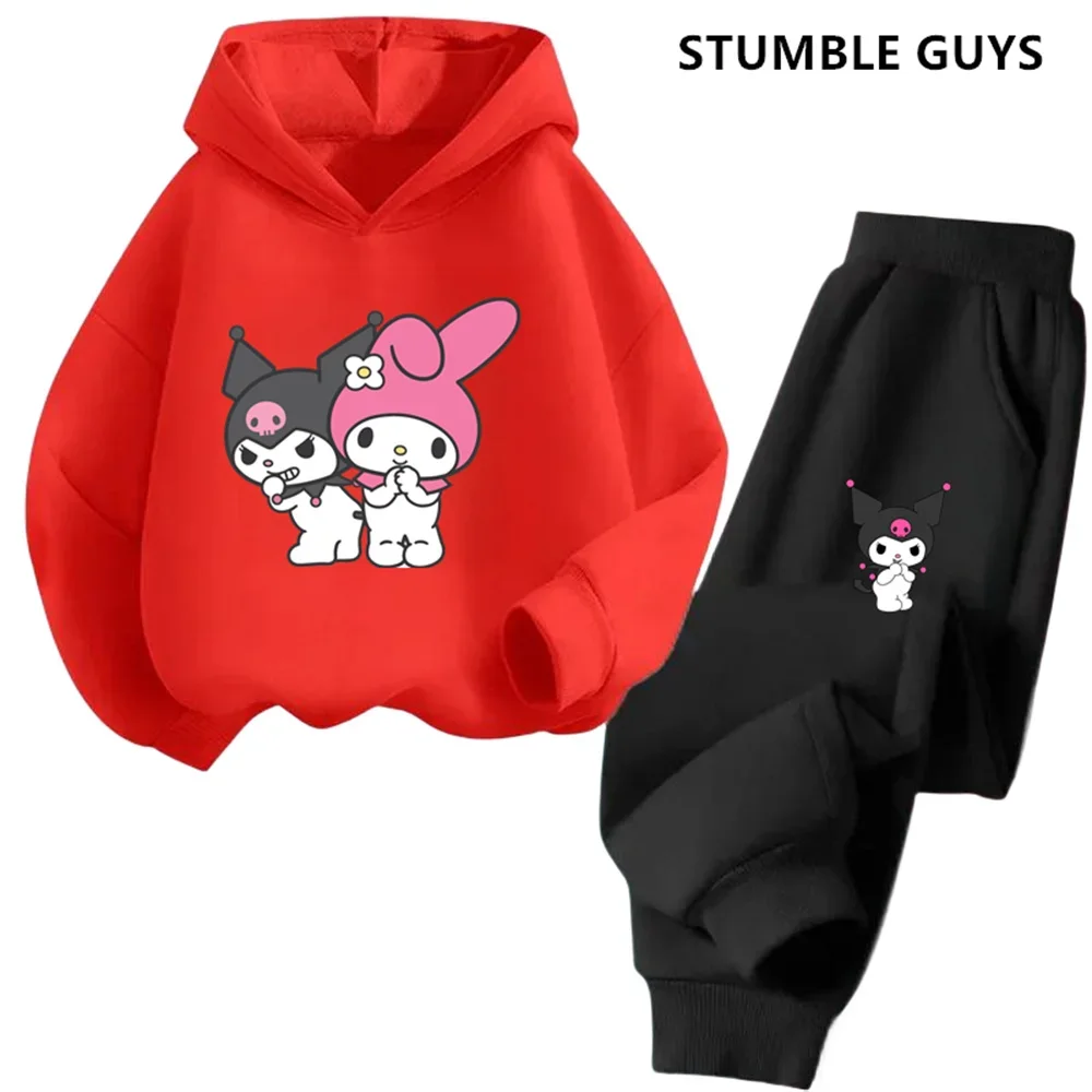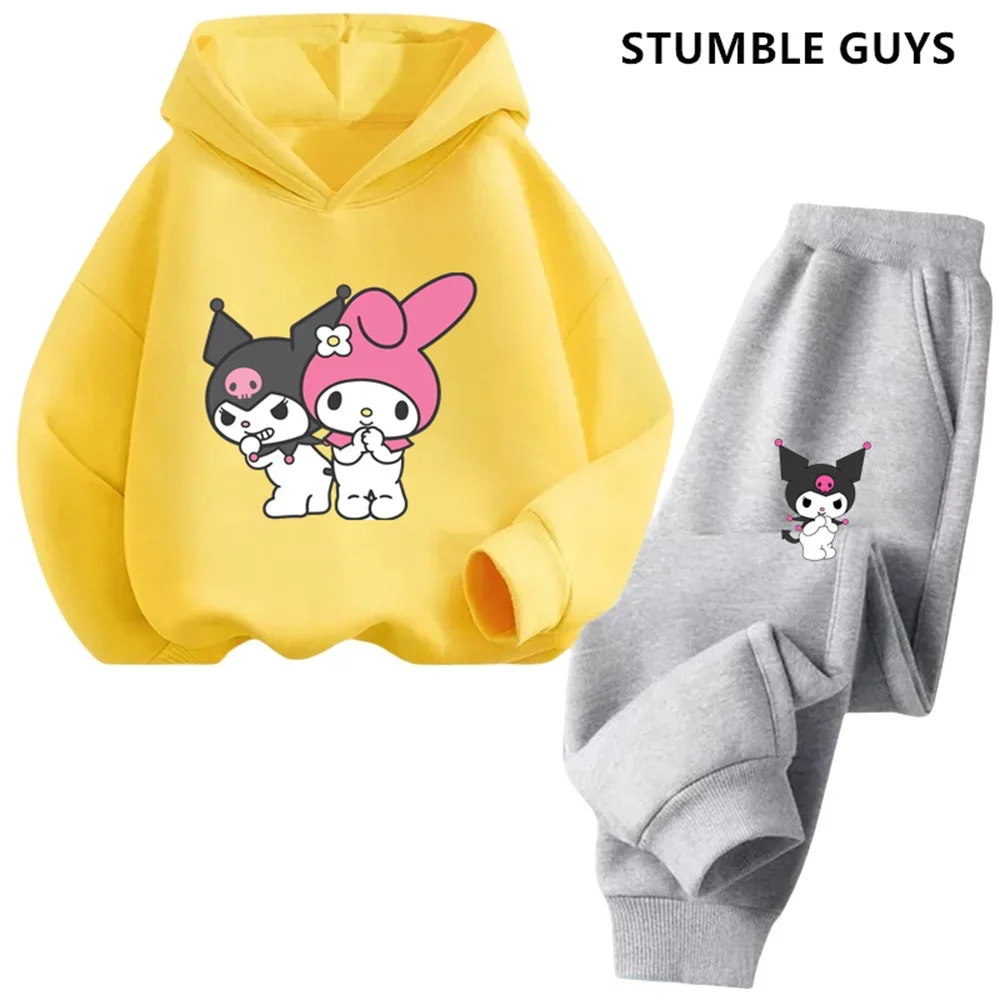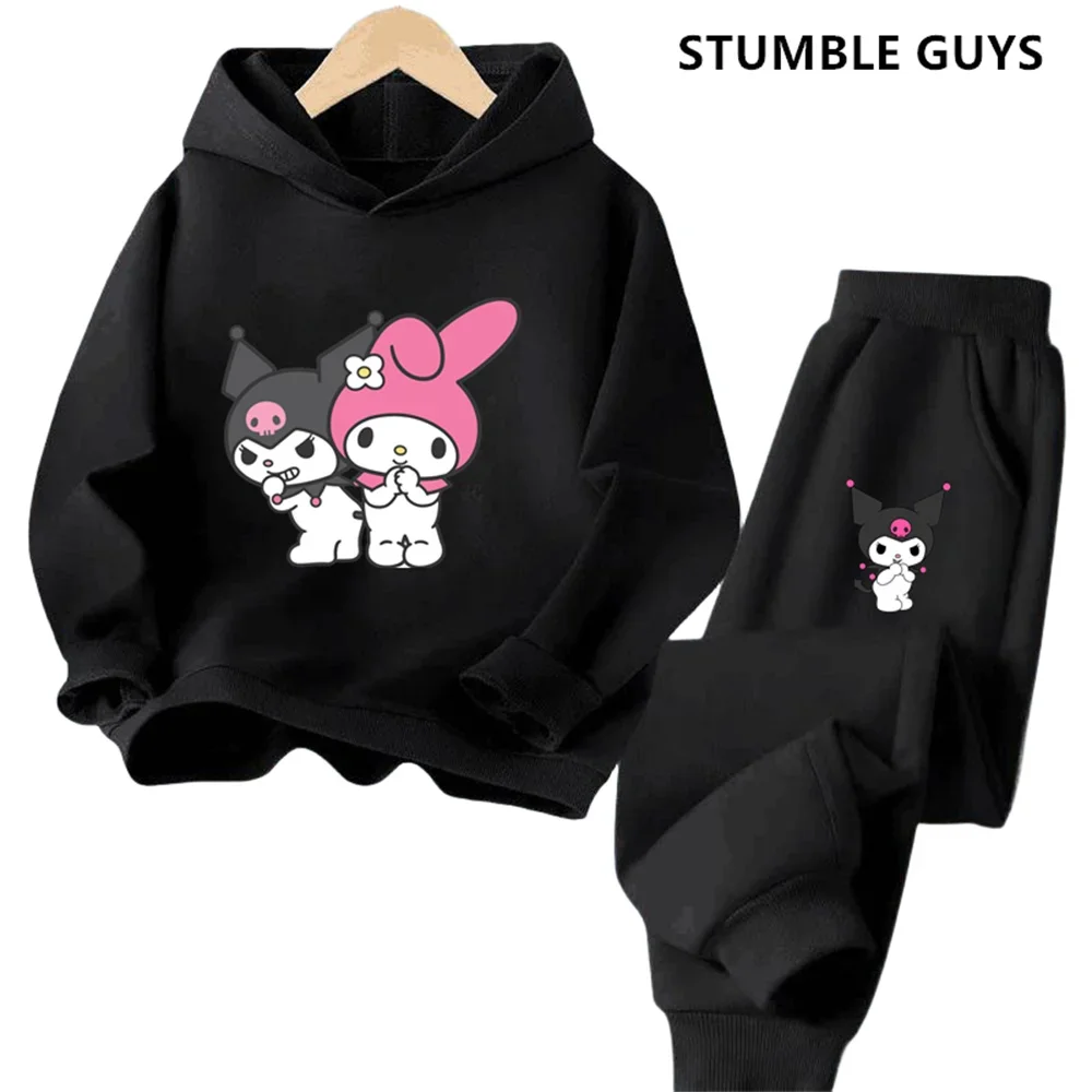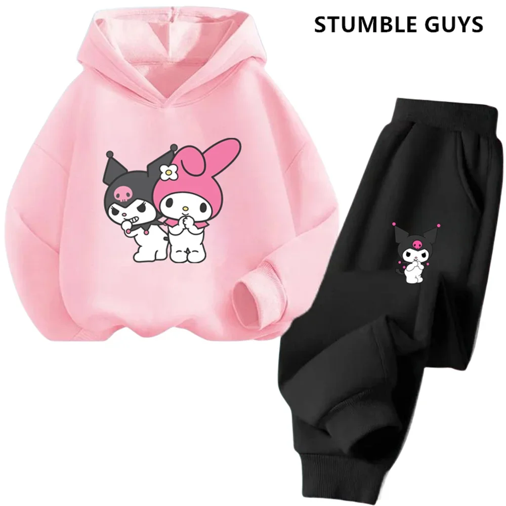 Felpa con cappuccio per bambini Set primavera autunno Cartoon stampato Graffiti Cute Wind Sanrio Melody Kuromi abbigliamento ragazze felpa con cappuccio
