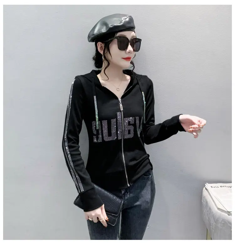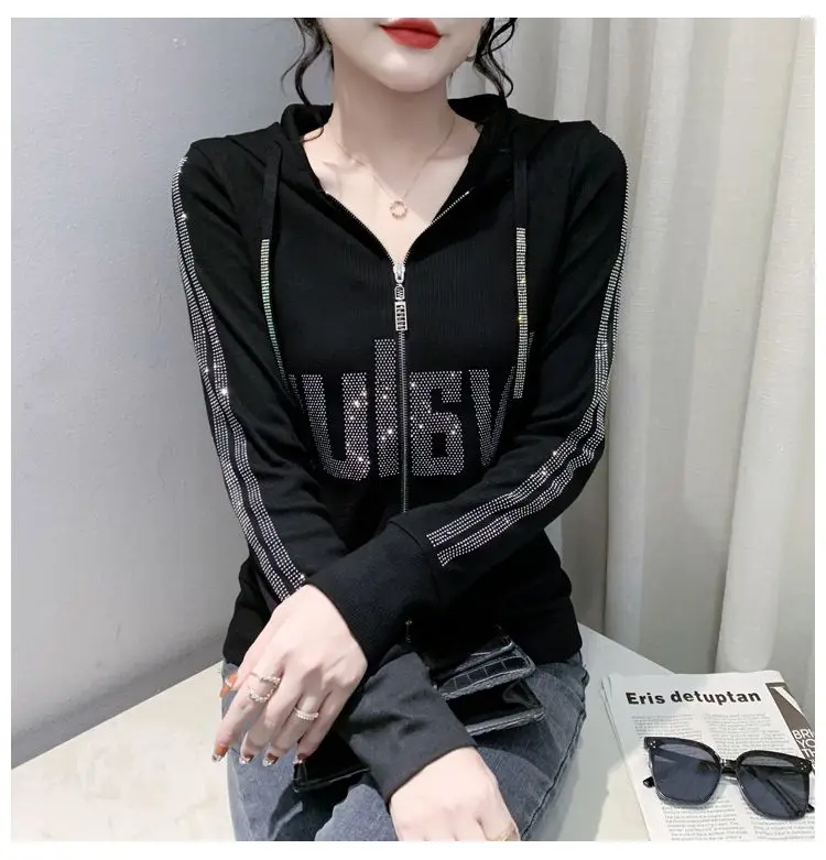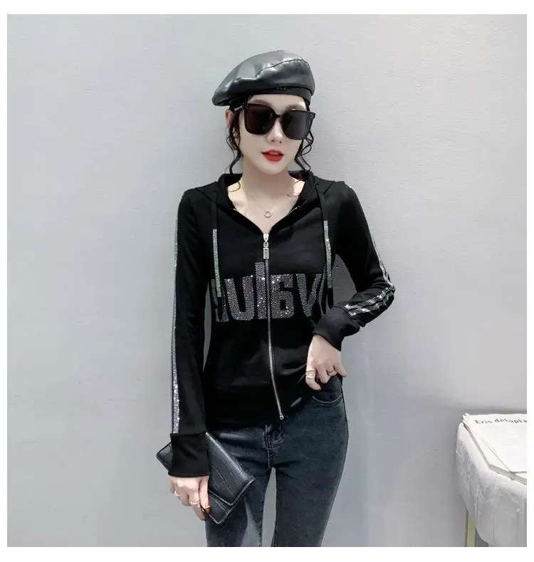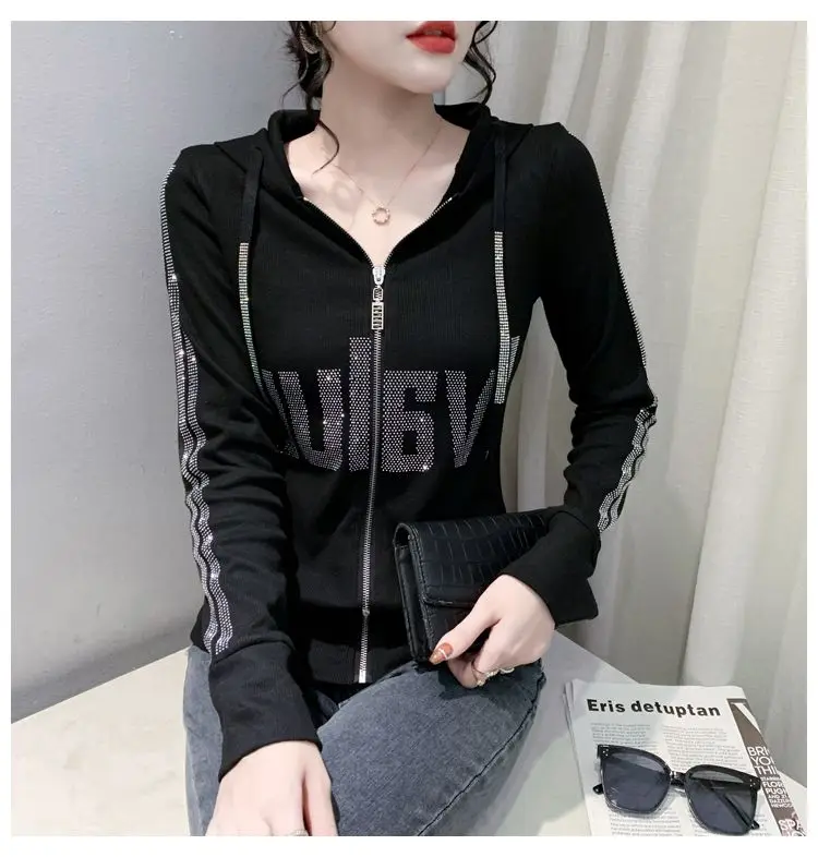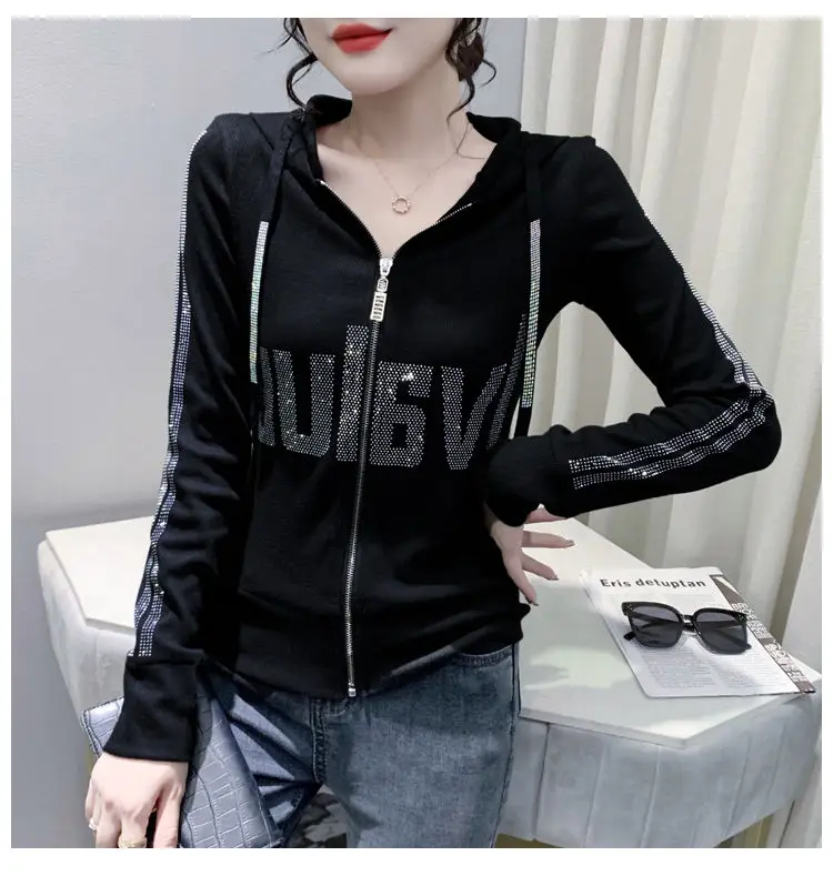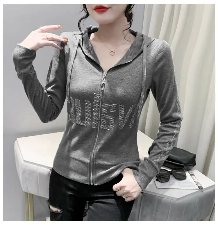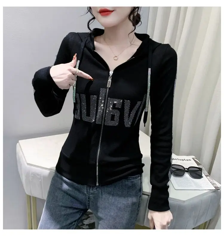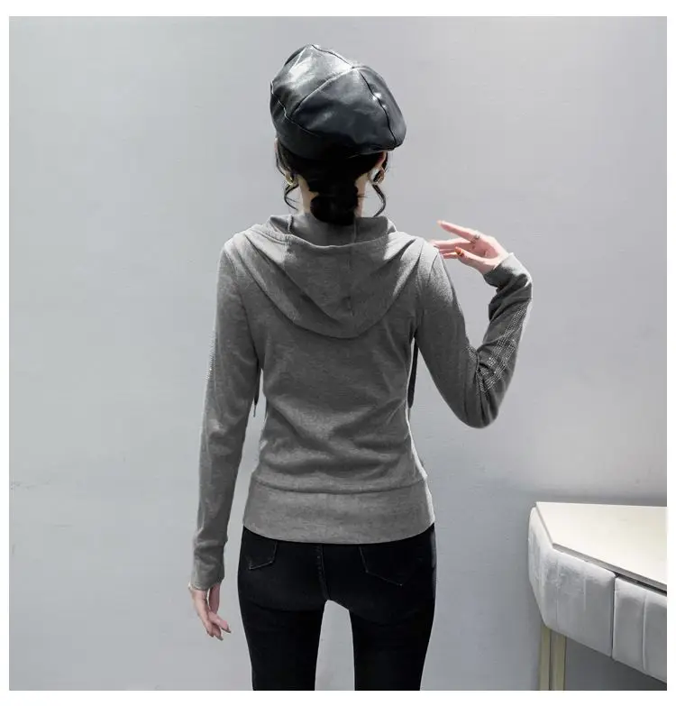 Felpa con cappuccio slim Cardigan con cerniera europea autunno e inverno Top da donna con design di nicchia a maniche lunghe
