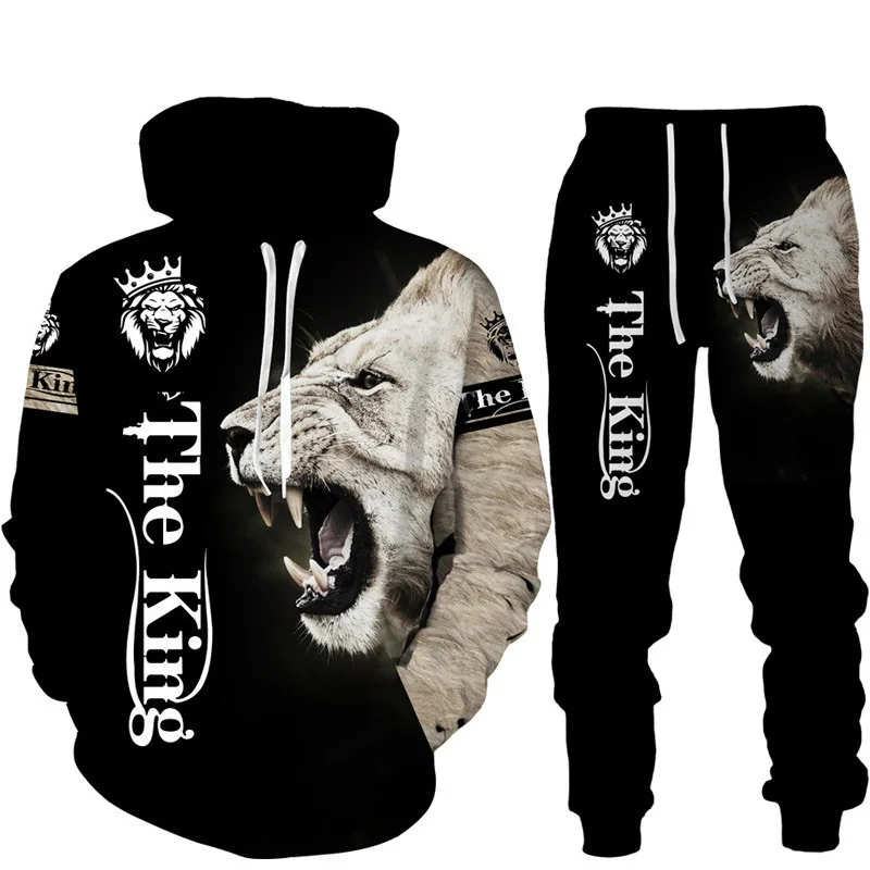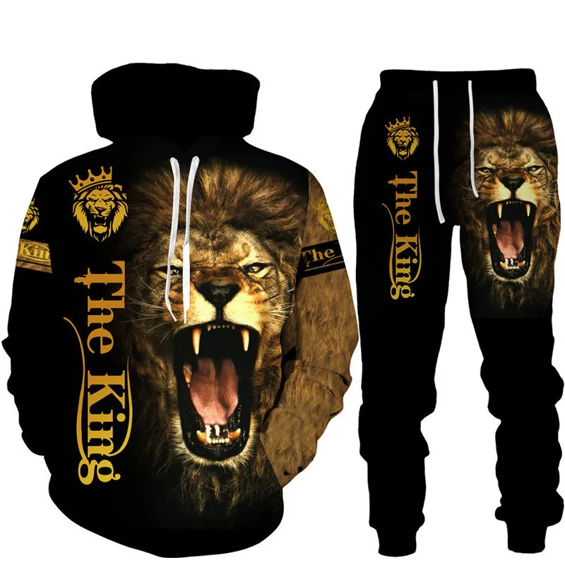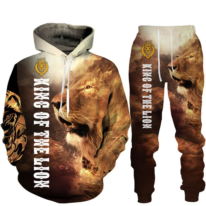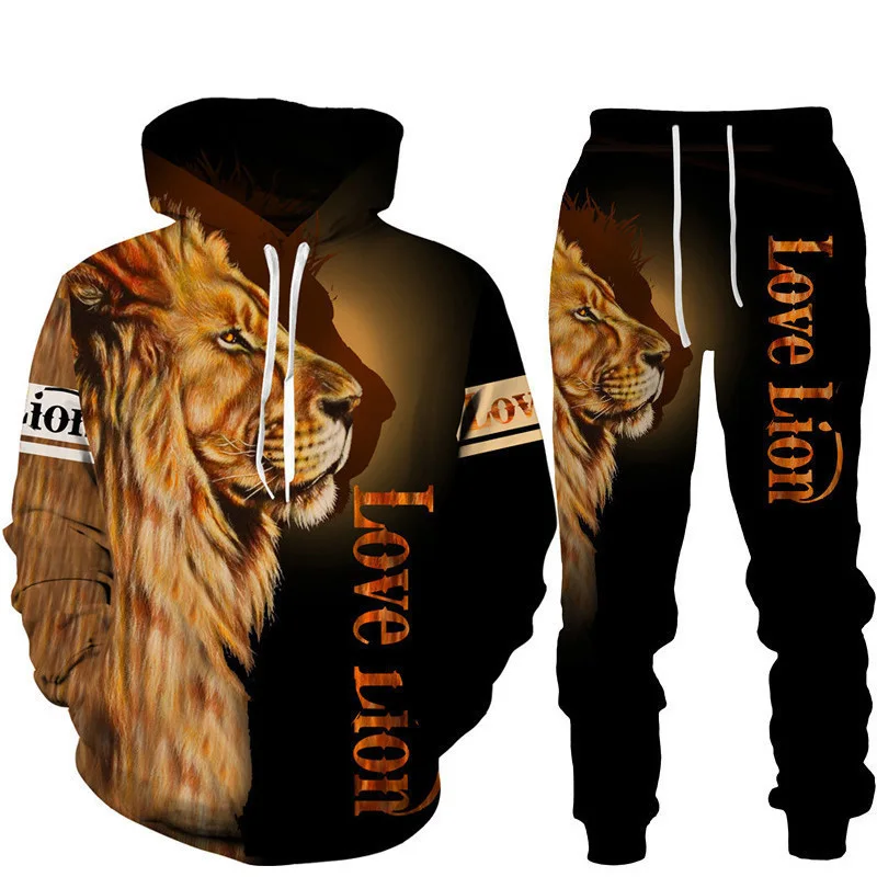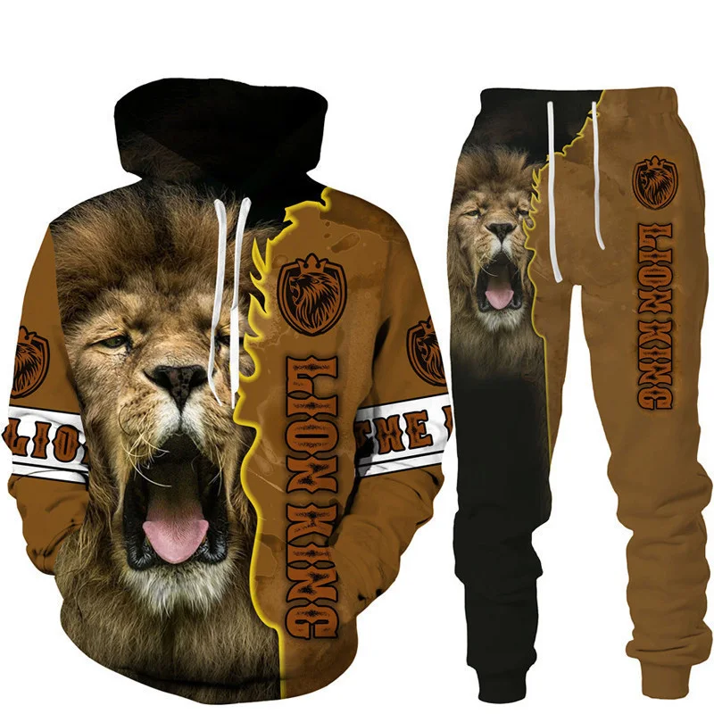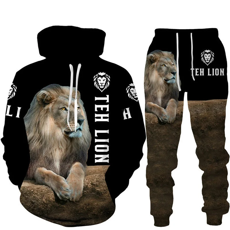 Felpa con cappuccio stampata in 3D Lion King set tuta da jogging in due pezzi per abbigliamento sportivo da uomo di moda