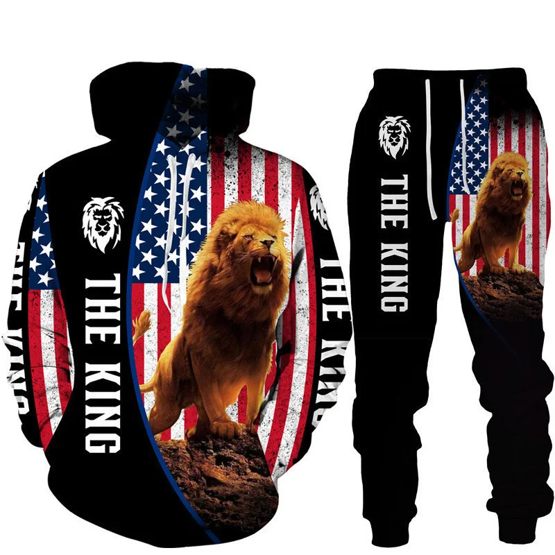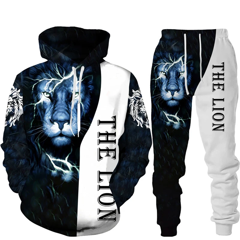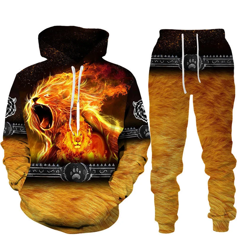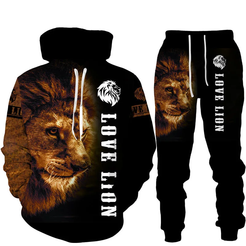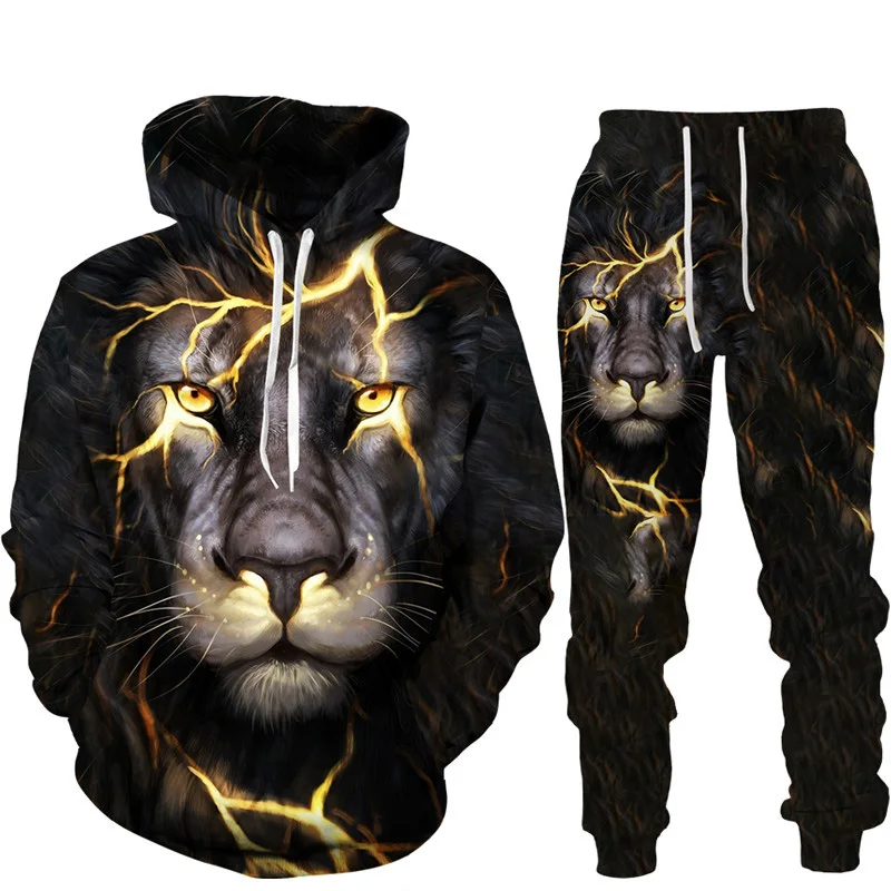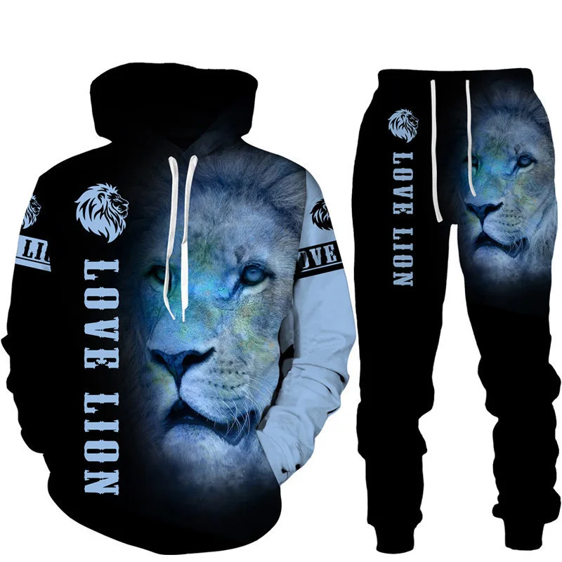 Felpa con cappuccio stampata in 3D Lion King set tuta da jogging in due pezzi per abbigliamento sportivo da uomo di moda