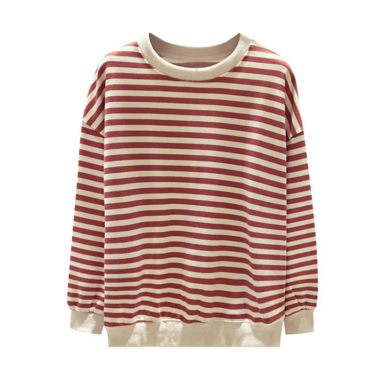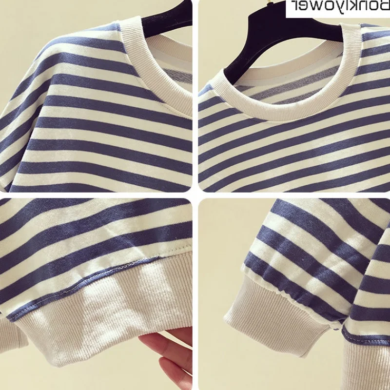 Felpa da donna a righe in cotone, pullover slim a maniche lunghe, top girocollo, ampio, primavera e autunno, nuovo, 2024