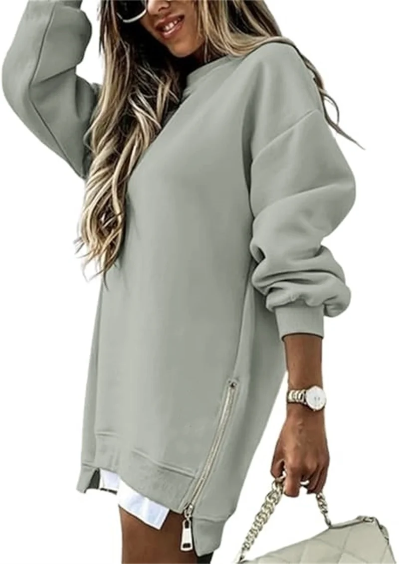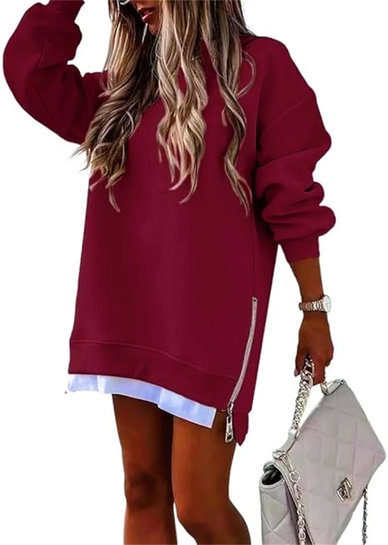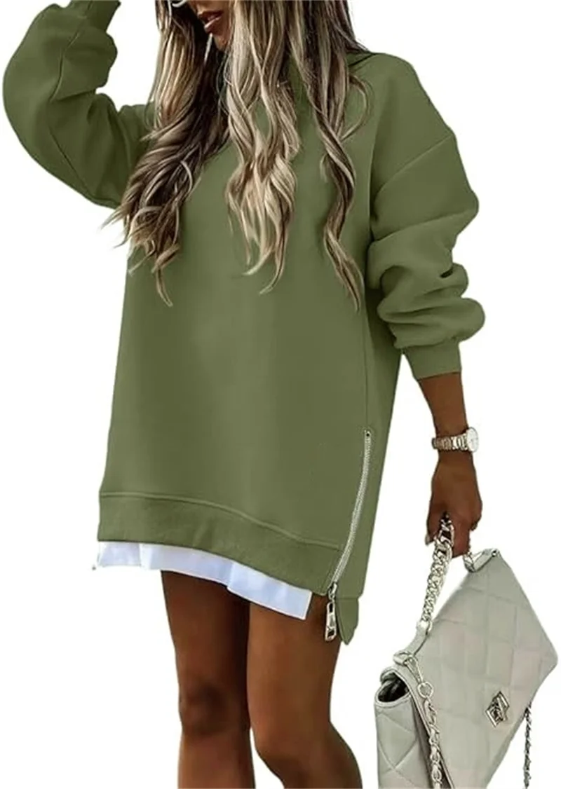 7 recensioni per Felpa da donna primavera autunno moda splicing design con cerniera laterale girocollo maniche lunghe top irregolari di media lunghezza