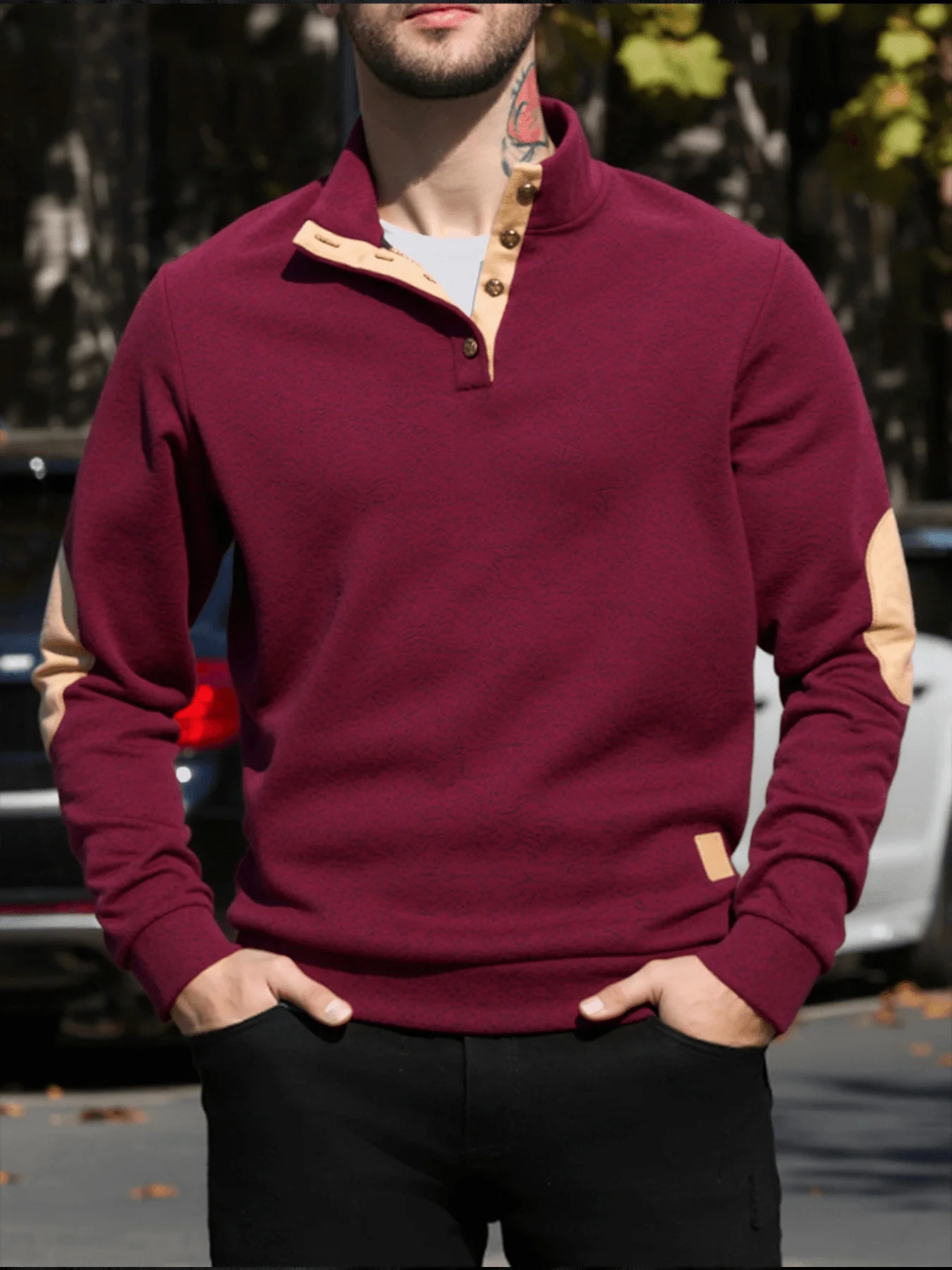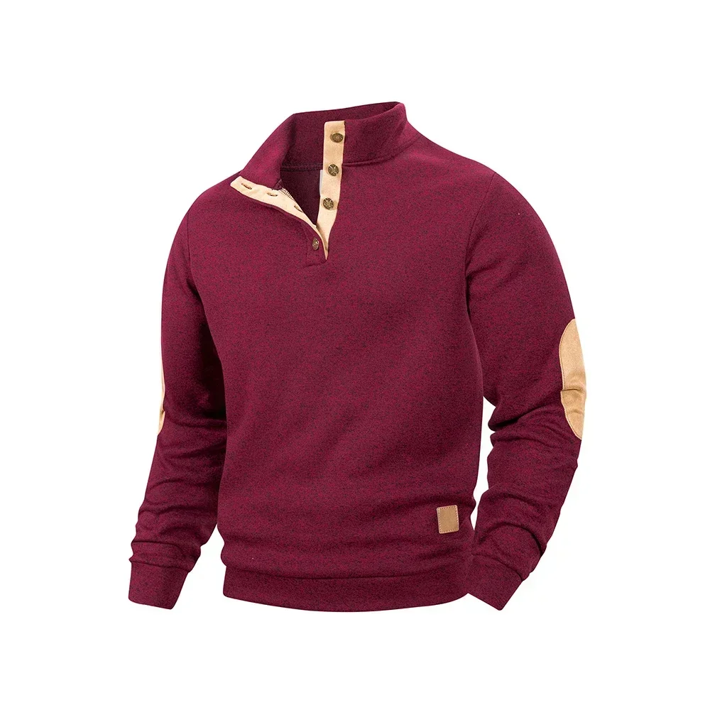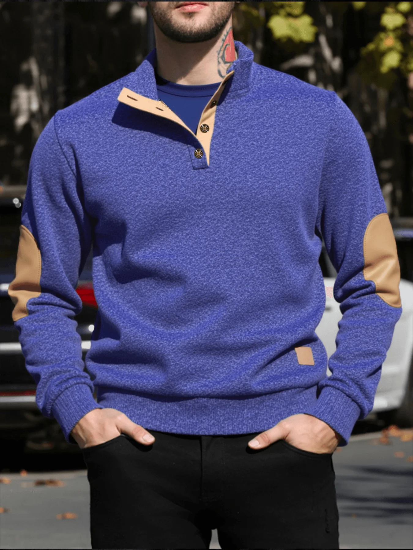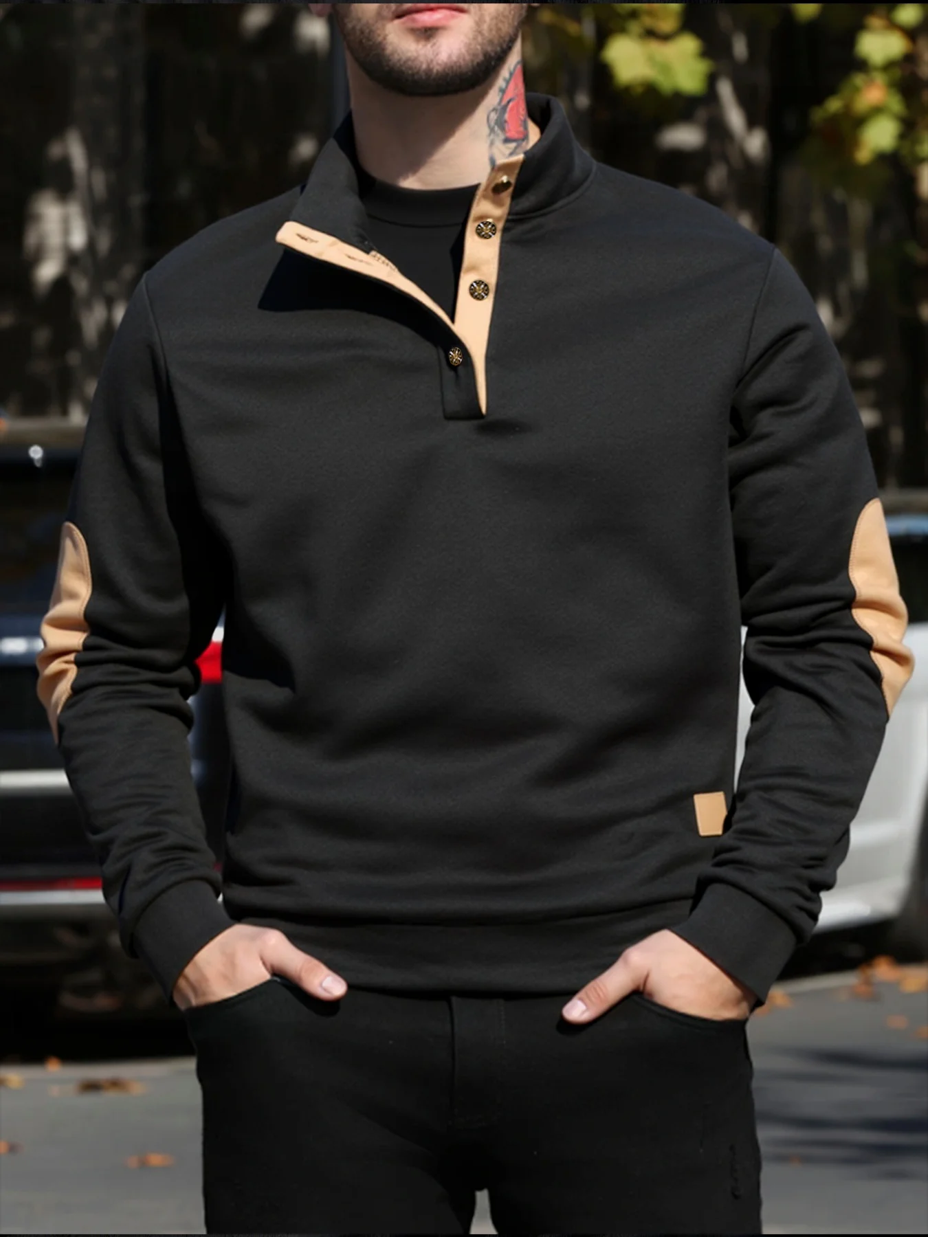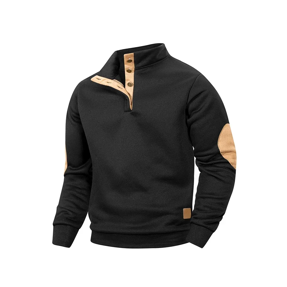Felpa da uomo con colletto rialzato con bottoni Autunno Inverno Tinta unita Top casual Maglione sportivo Pullover a maniche lunghe lavorato a maglia da uomo