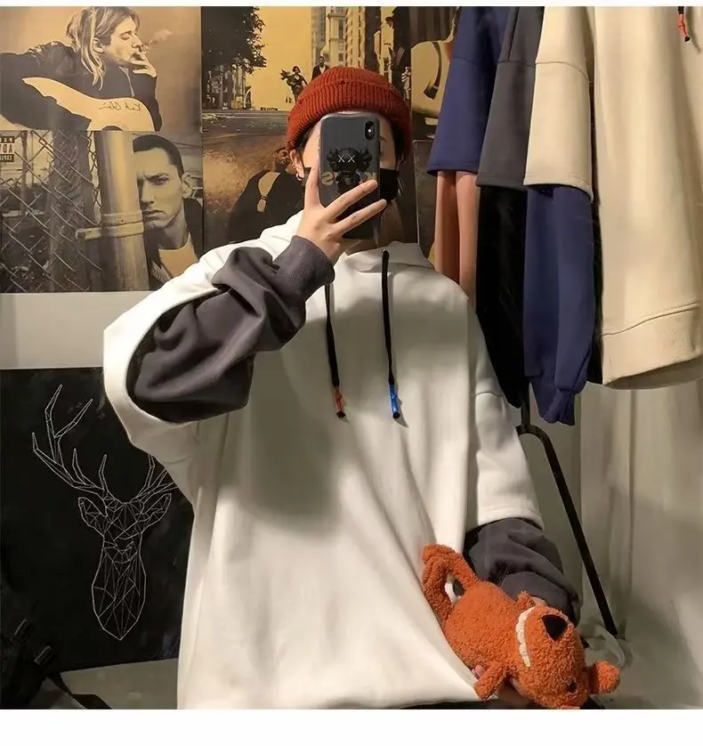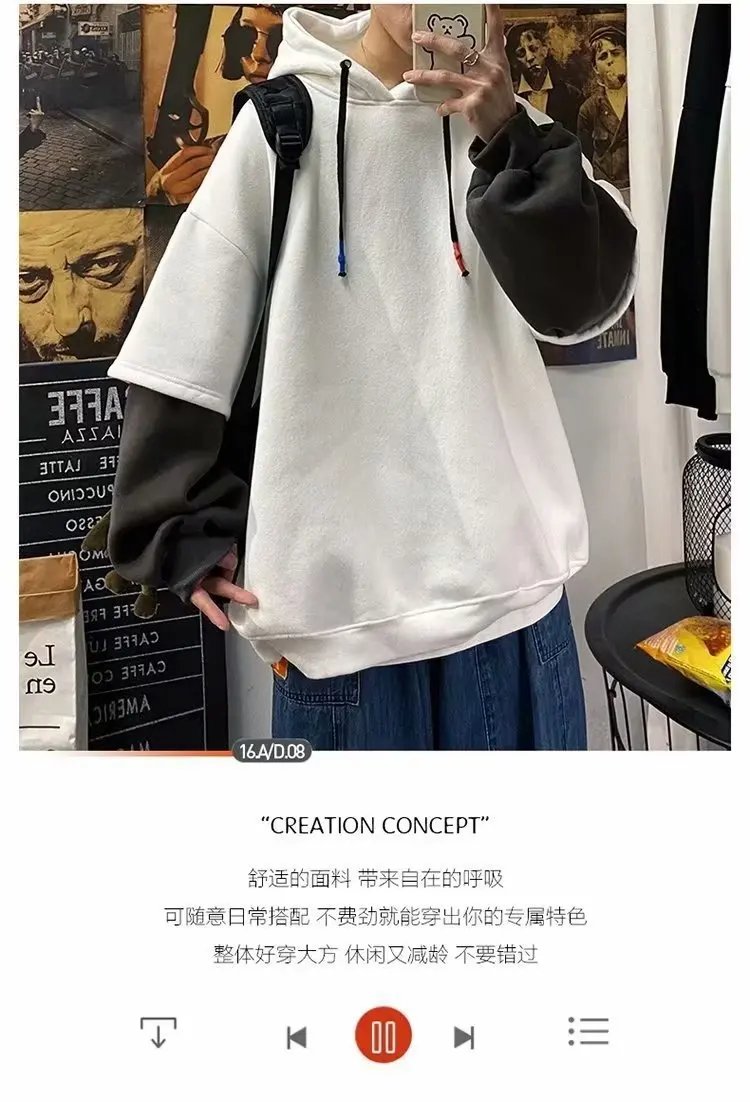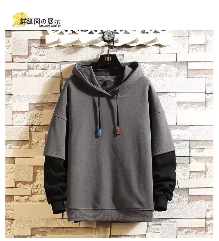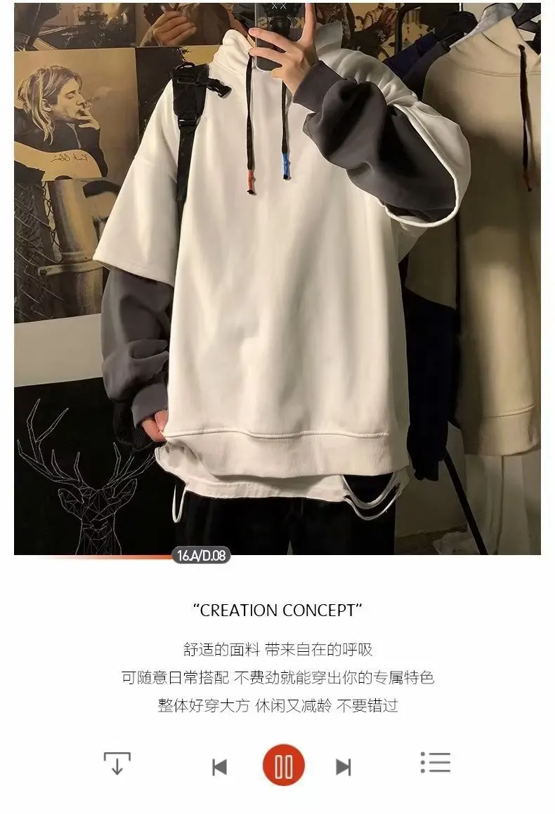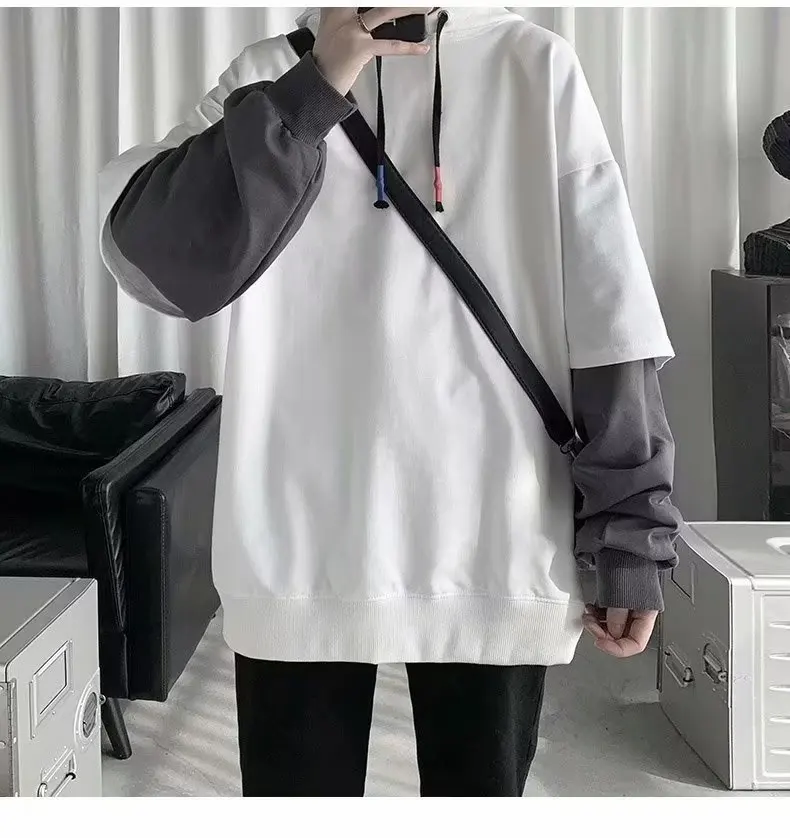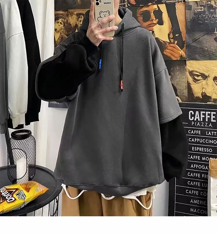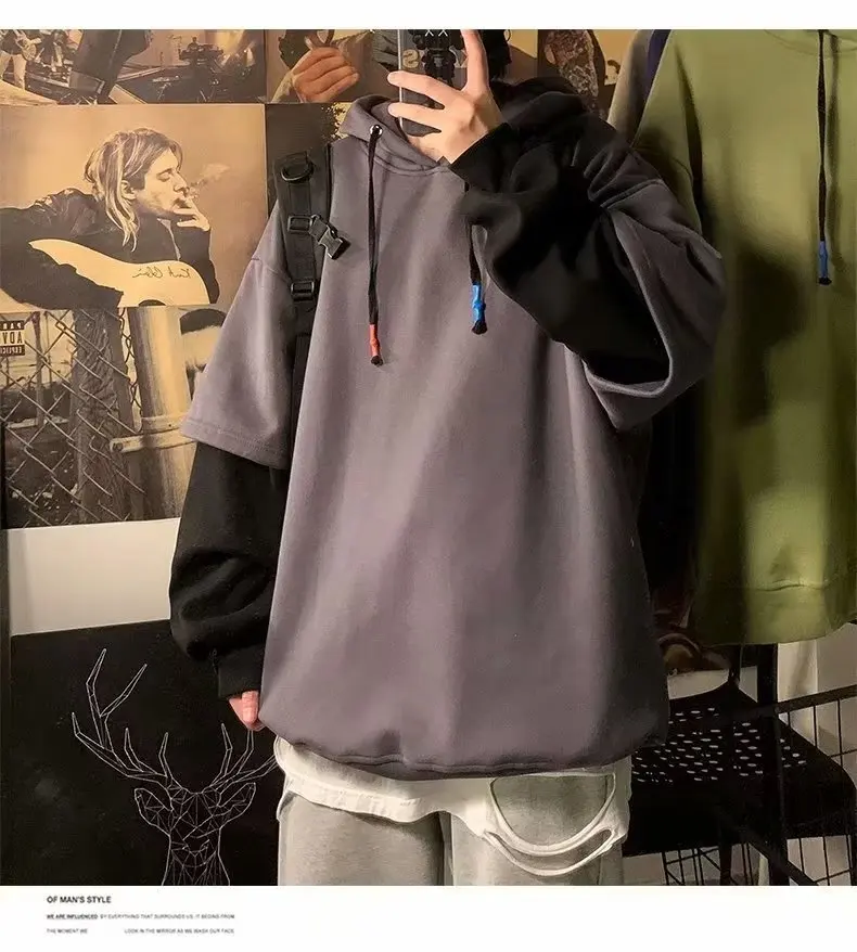 Felpa finta in due pezzi Felpa con cappuccio da uomo Autunno Inverno Moda coreana Ins Hip Hop Top Cappotti da strada oversize Harajuku Abbigliamento uomo