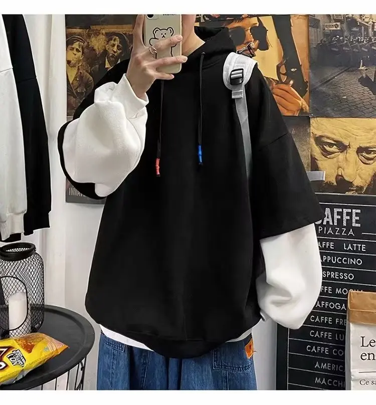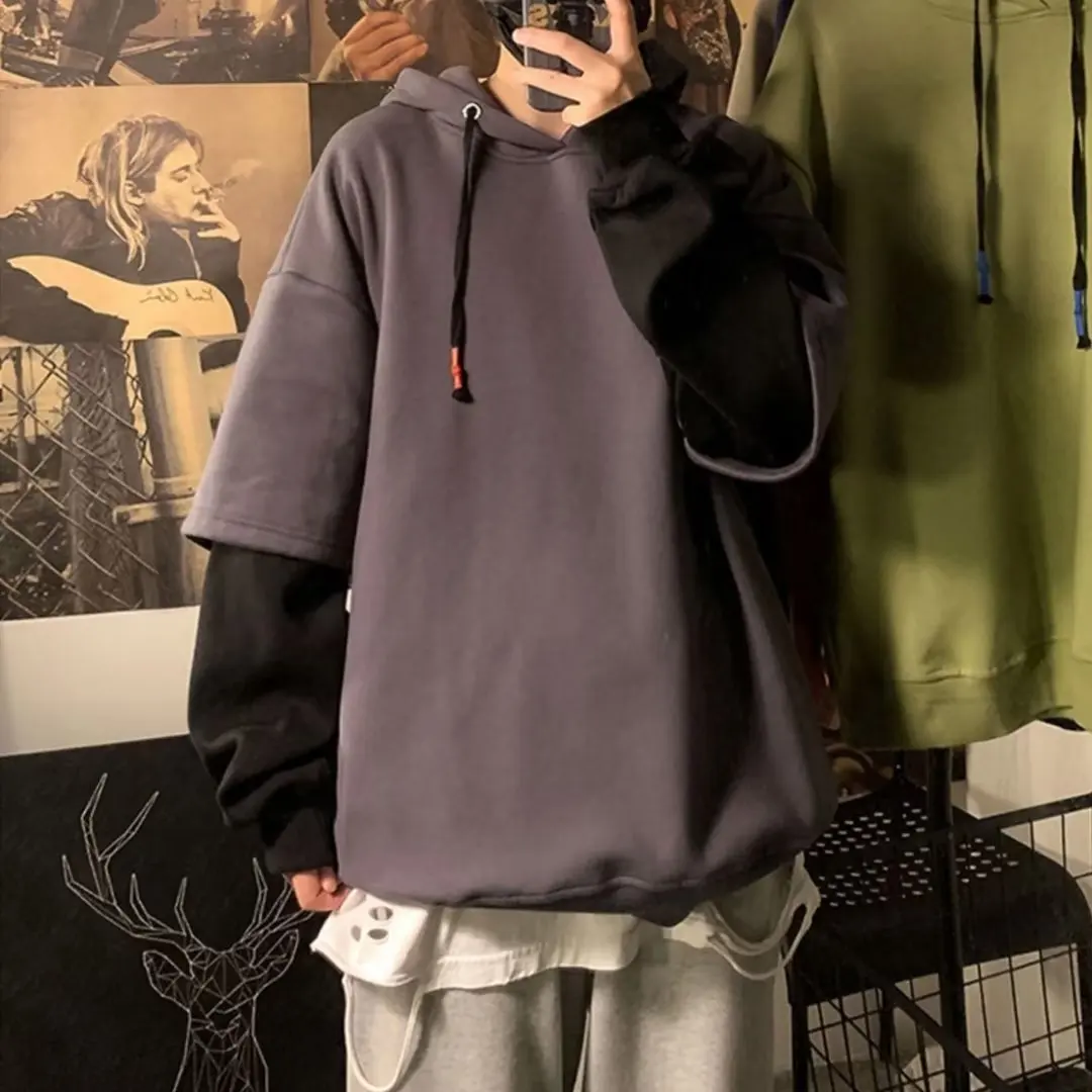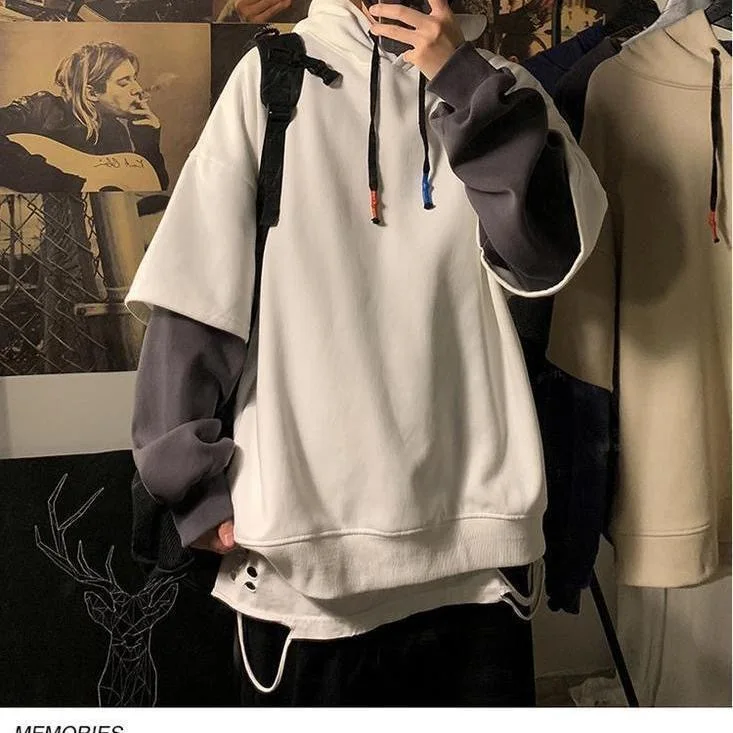 Felpa finta in due pezzi Felpa con cappuccio da uomo Autunno Inverno Moda coreana Ins Hip Hop Top Cappotti da strada oversize Harajuku Abbigliamento uomo