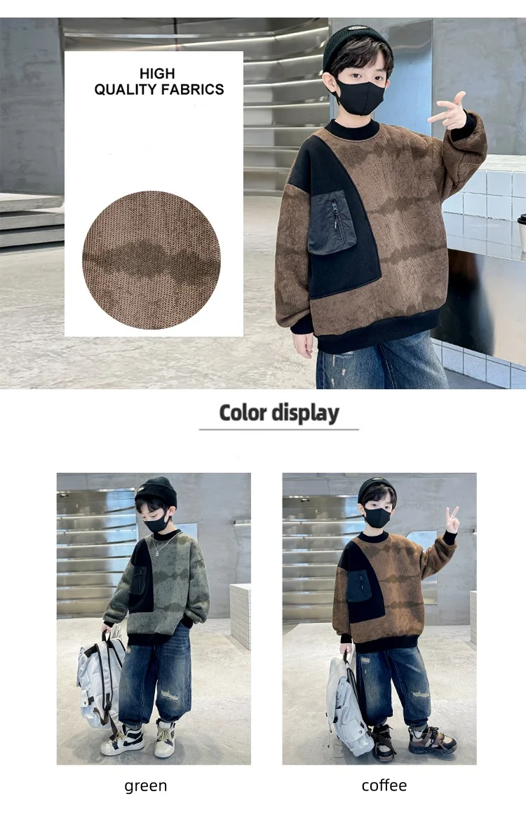 Foderato in pile per il calore, questo maglione mantiene il tuo piccolo comodo durante i mesi autunnali e invernali.