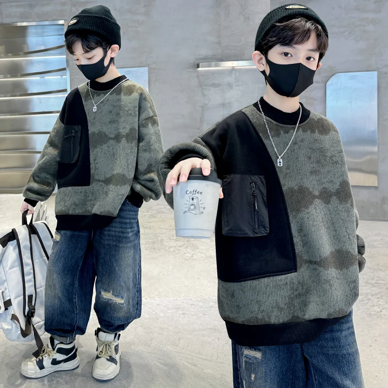 Foderato in pile per il calore, questo maglione mantiene il tuo piccolo comodo durante i mesi autunnali e invernali.