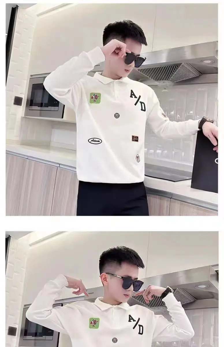 Felpa spessa da uomo primavera autunno colletto per il tempo libero Top nuova maglietta alla moda