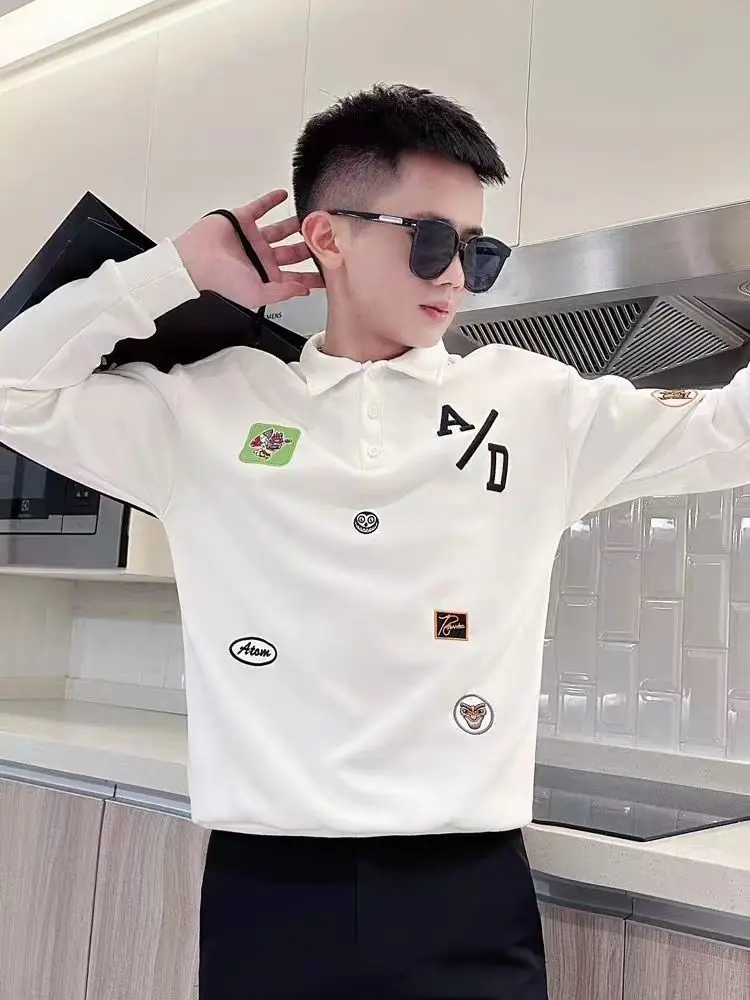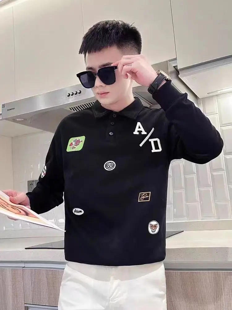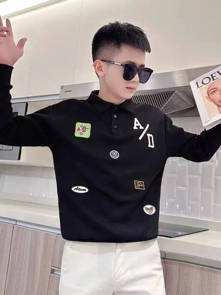 Felpa spessa da uomo primavera autunno colletto per il tempo libero Top nuova maglietta alla moda