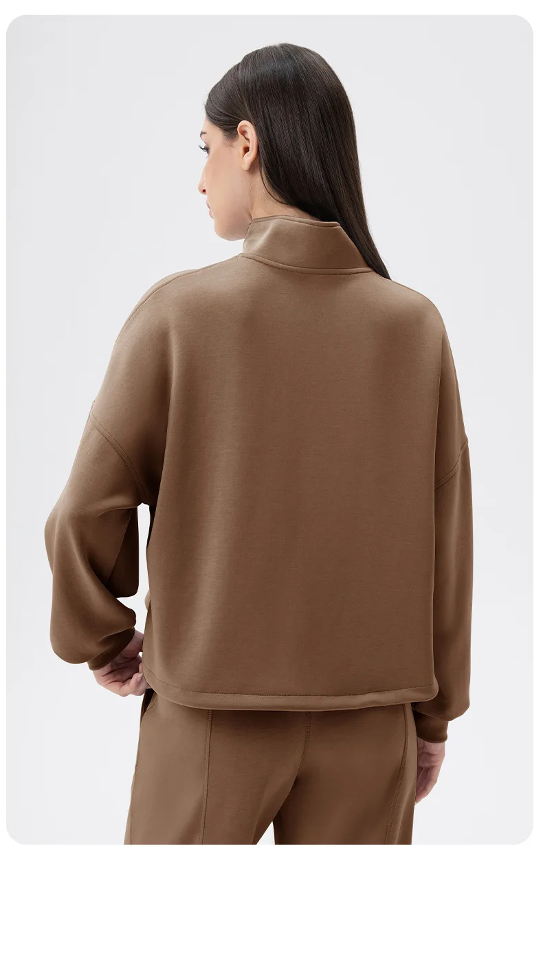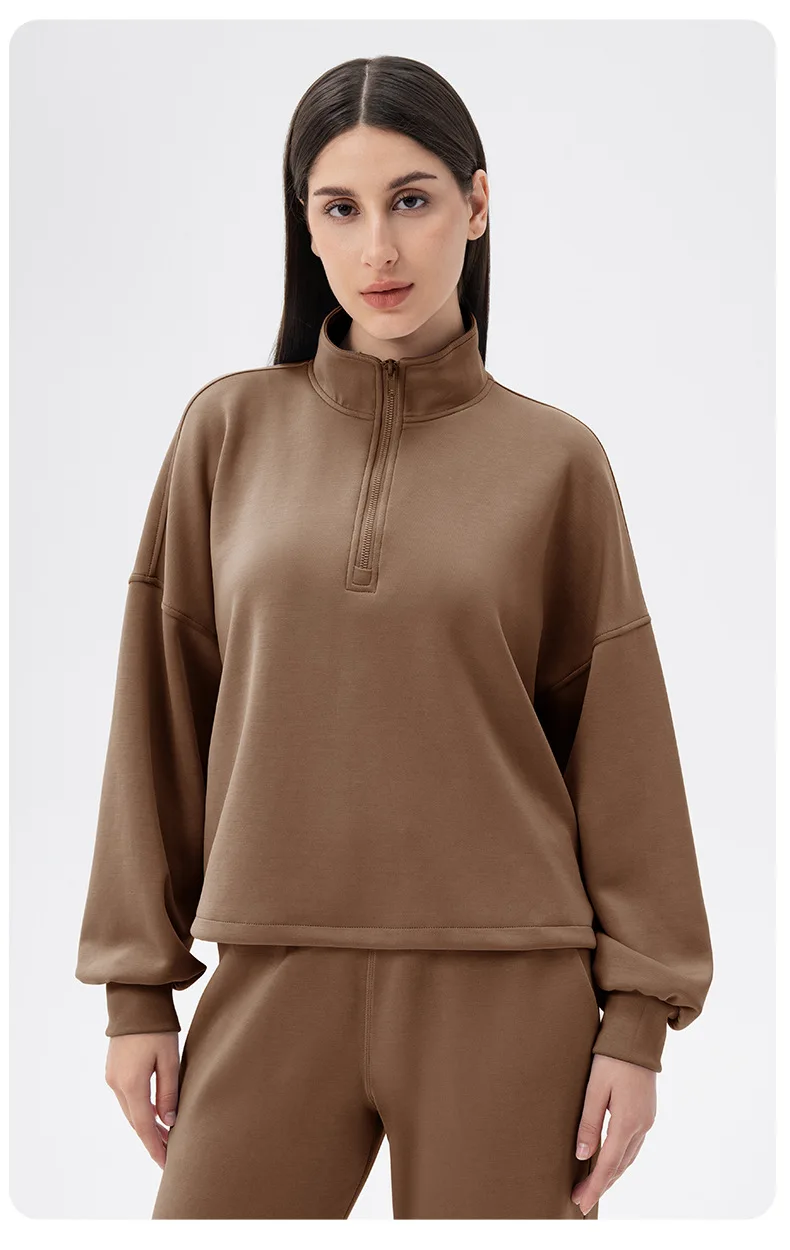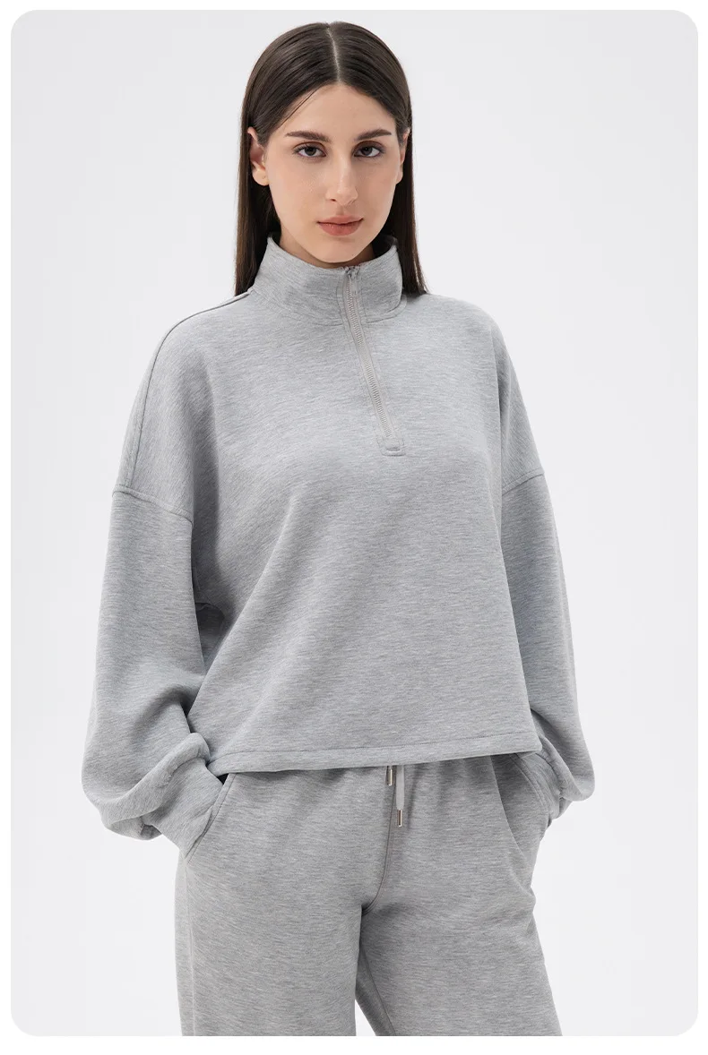 Felpa sportiva da donna autunno/inverno abbigliamento da yoga modale vestibilità ampia colletto alla coreana casual corsa fitness top e pantaloni sof traspirante