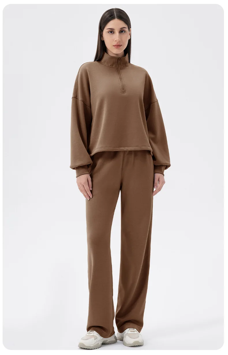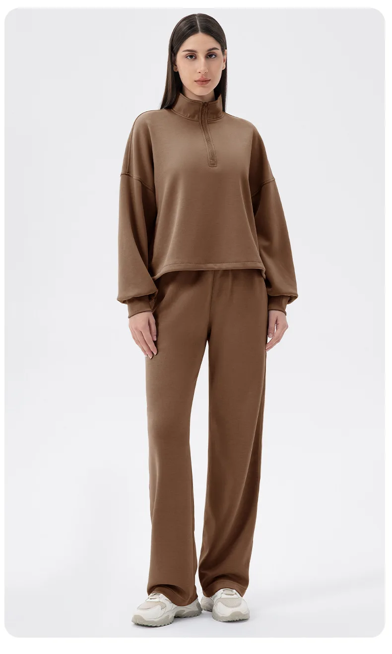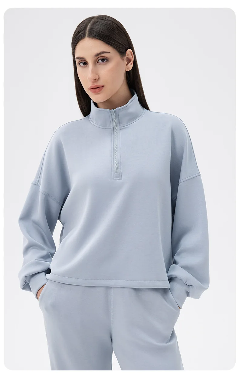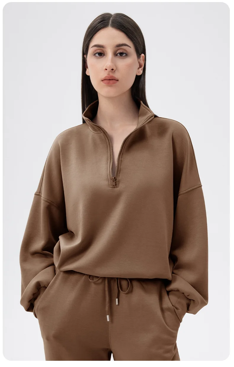 Felpa sportiva da donna autunno/inverno abbigliamento da yoga modale vestibilità ampia colletto alla coreana casual corsa fitness top e pantaloni sof traspirante