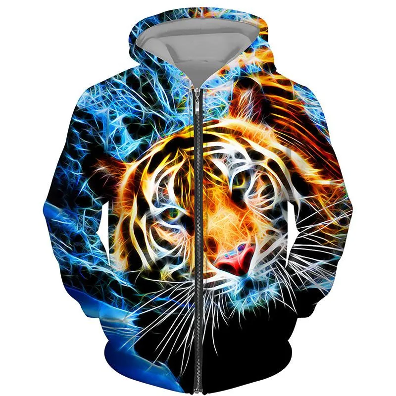 Felpe con cerniera primaverili e autunnali Felpe con cappuccio con cerniera con stampa 3D The Lion da uomo Felpe Abbigliamento casual da uomo Cappotti da donna