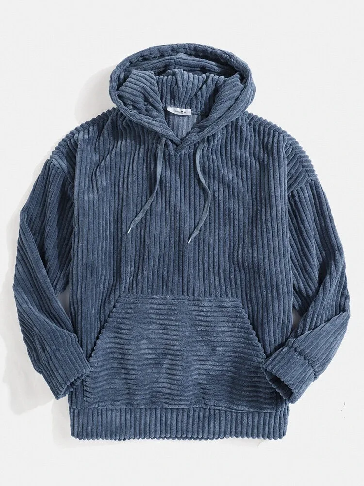 Felpe da uomo autunno inverno 2023 felpa con cappuccio a spalla con tasca a canguro tinta unita a maniche lunghe in velluto a coste addensato 1Felpe da uomo autunno inverno 2023 felpa con cappuccio a spalla con tasca a canguro tinta unita a maniche lunghe in velluto a coste addensato