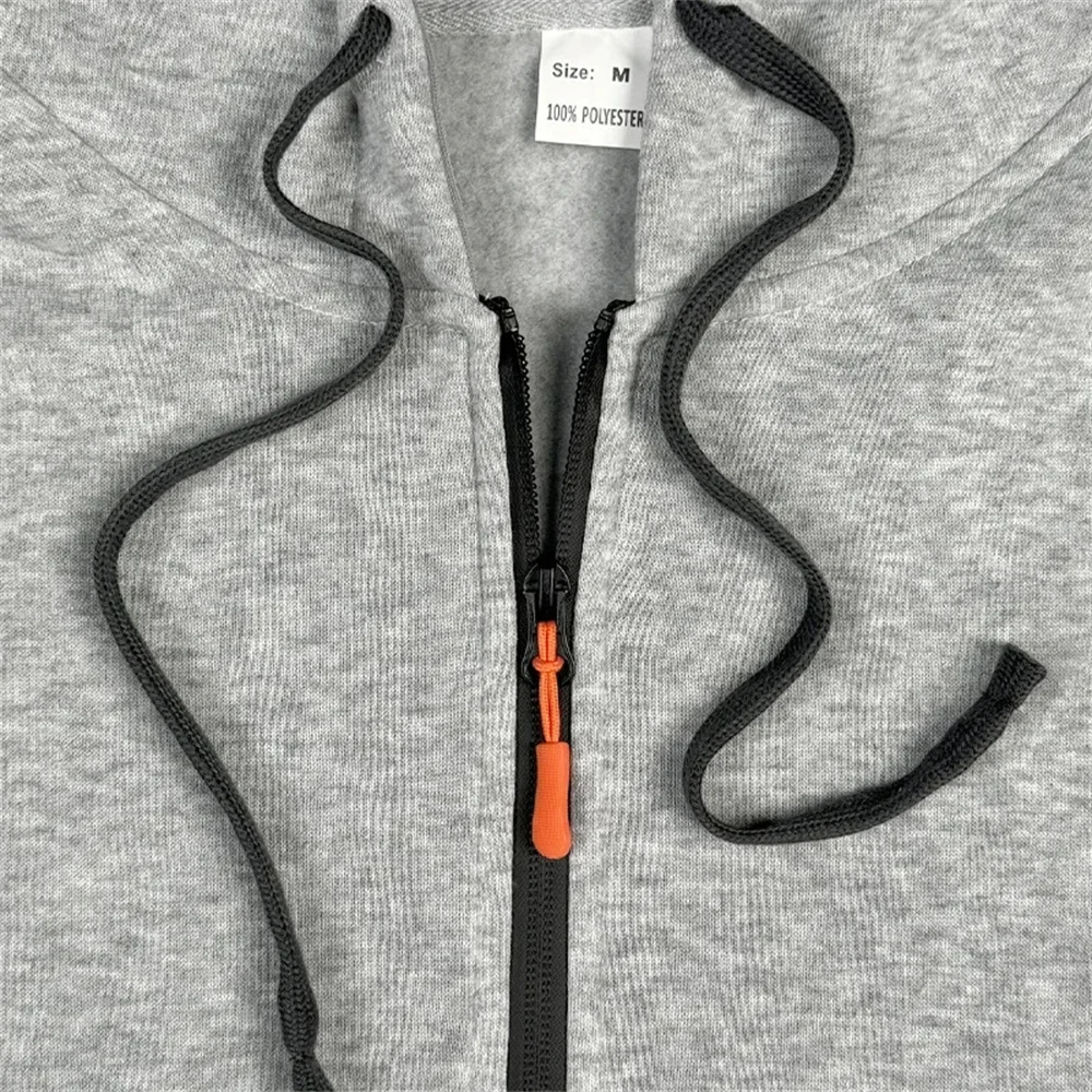 Giacca con cappuccio con cerniera stile americano alla moda Giacca da uomo ampia vestibilità casual autunno moda giacca sottile patchwork riflettente colletto alla coreana
