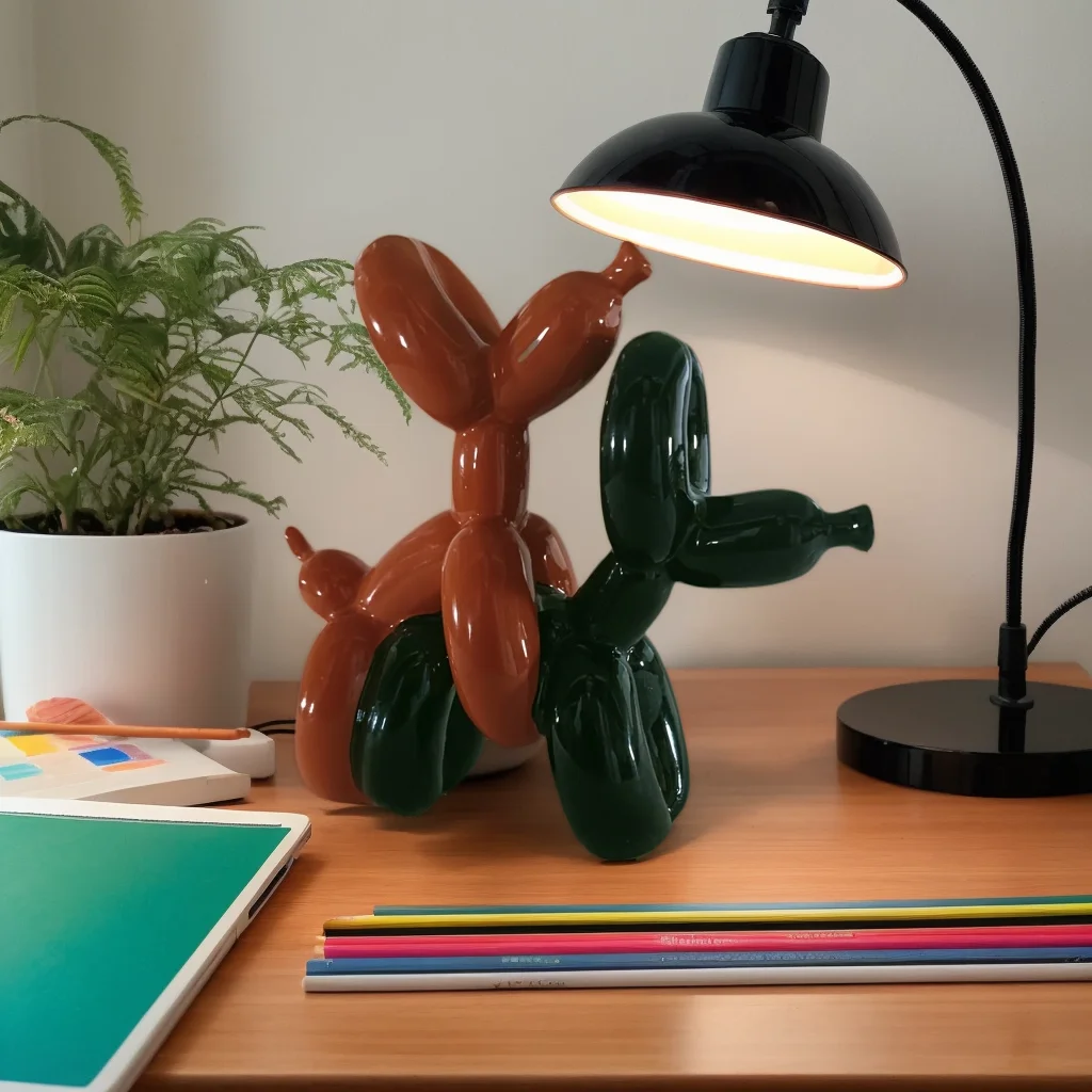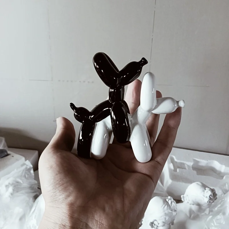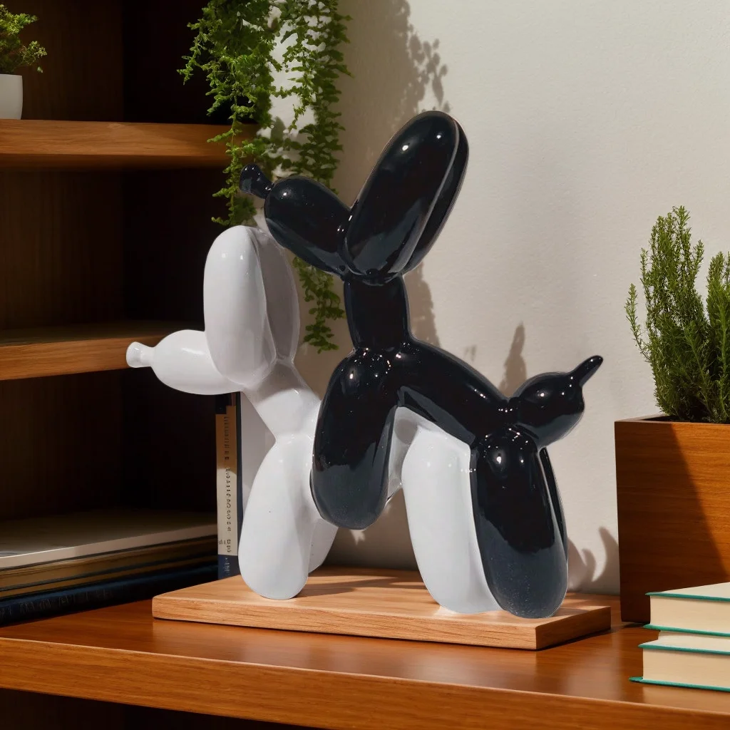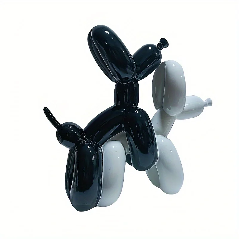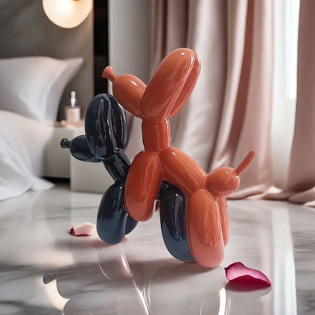 Statua di cane con doppio palloncino in resina Ornamento astratto Scultura creativa Decorazioni per la casa Accessori per ufficio Figurine da scrivania
