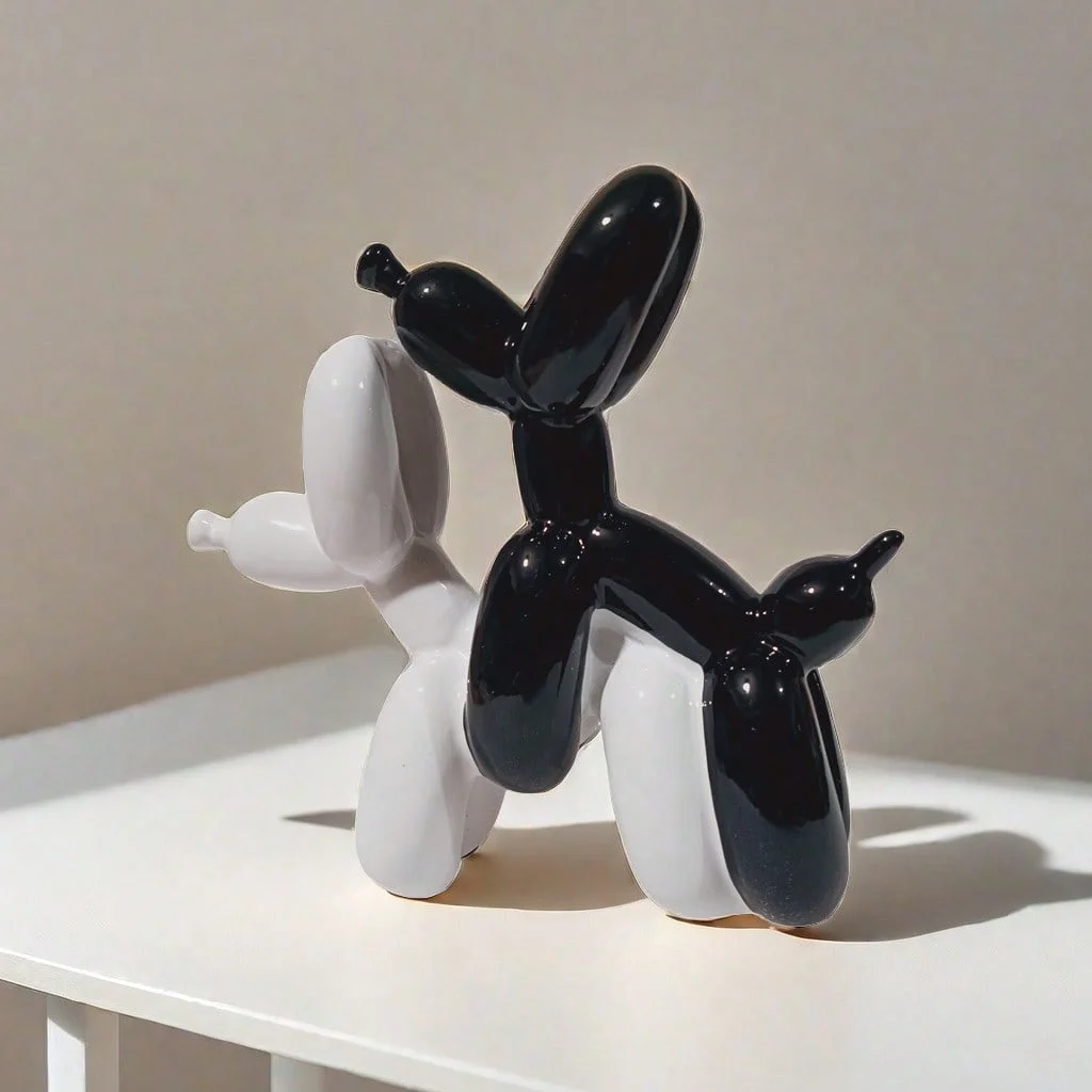 Statua di cane con doppio palloncino in resina Ornamento astratto Scultura creativa Decorazioni per la casa Accessori per ufficio Figurine da scrivania