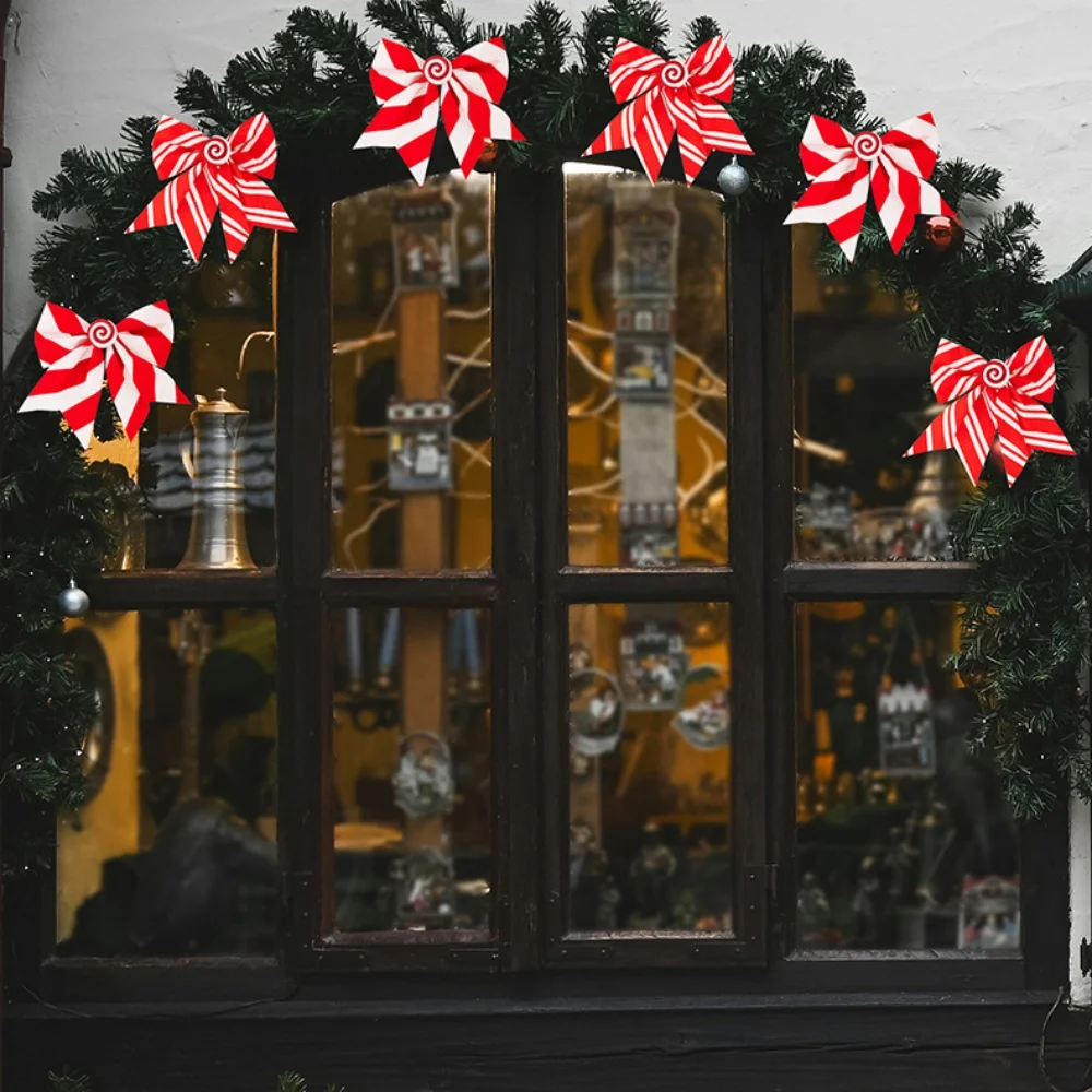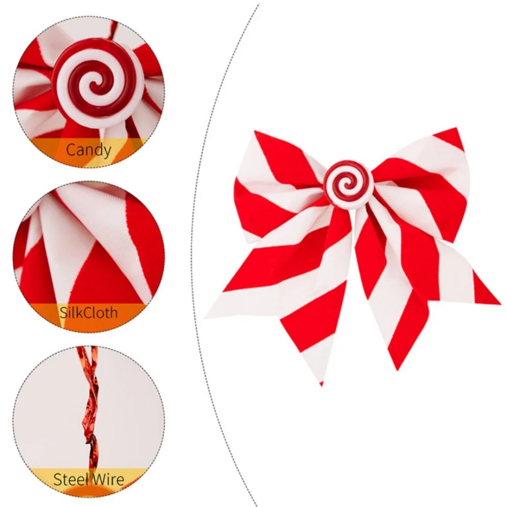 Fiocco di Natale Ciondolo per albero di Natale Fiocco per finestra con fiocco di caramelle a strisce rosse e bianche.