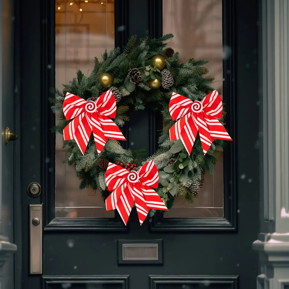 questi adorabili fiocchi natalizi a strisce rosse e bianche aggiungono un classico fascino natalizio a tua casa! questi fiocchi festivi sono perfetti per decorare la tua albero di Natale e aggiungere un tocco di bellezza alla ghirlanda.