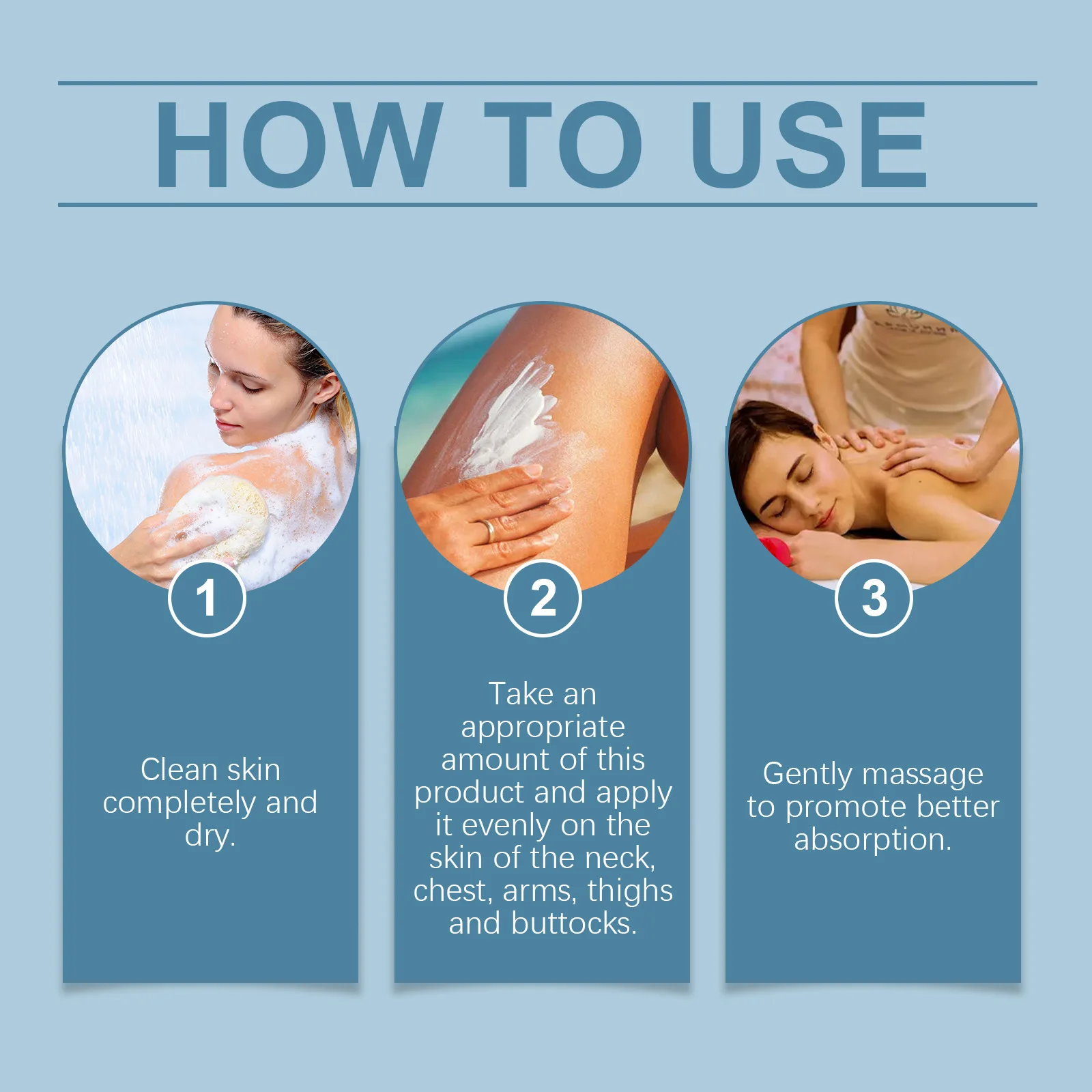 4.Multiuso: questa crema antirughe rassodante per la pelle del corpo può essere utilizzata su corpo, collo, braccio, schiena e gambe.Delicato su tutti i tipi di pelle.