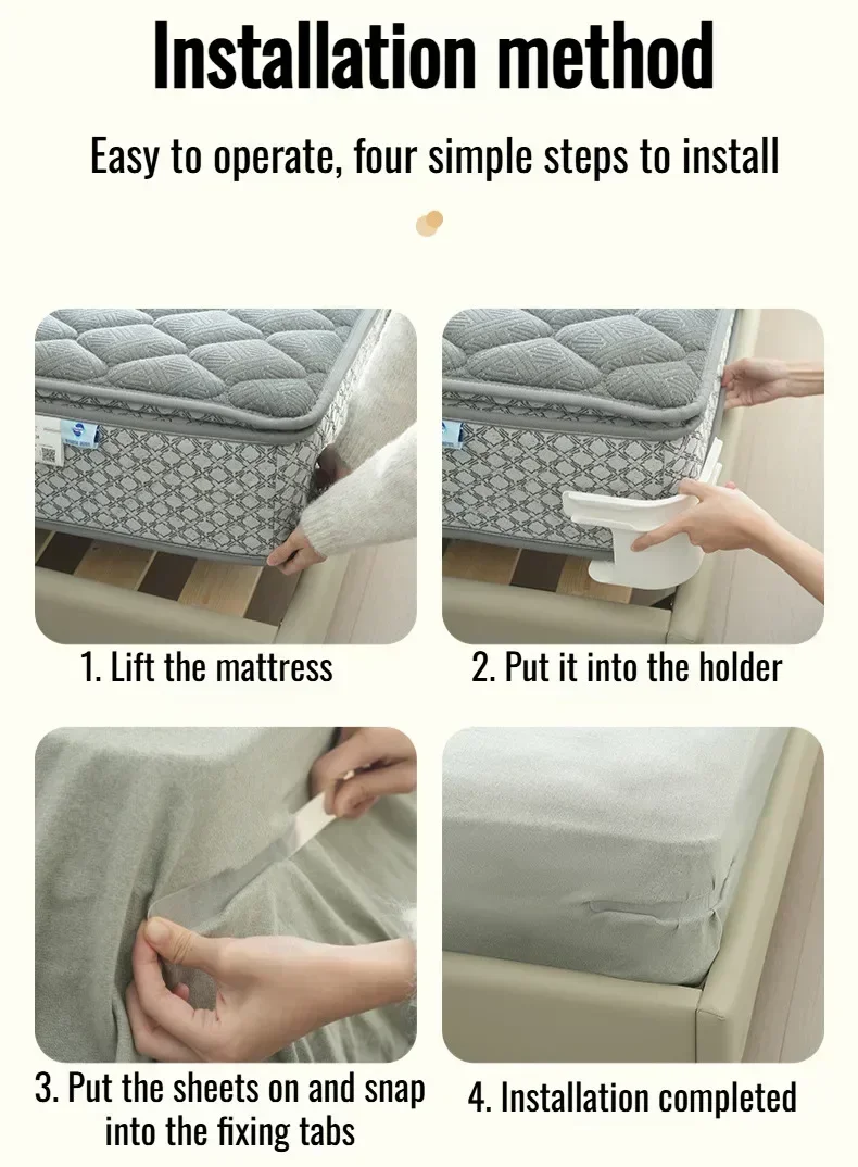 3.Adatto per tutti i Materassi: le strutture in lenzuola sono progettate per adattarsi a tutti i tipi di lenzuola e le dimensioni dei materassi, si è un letto singolo, matrimoniale, queen o king, o lenzuola estive/invernali, i nostri angoli funzionano bene con loro.