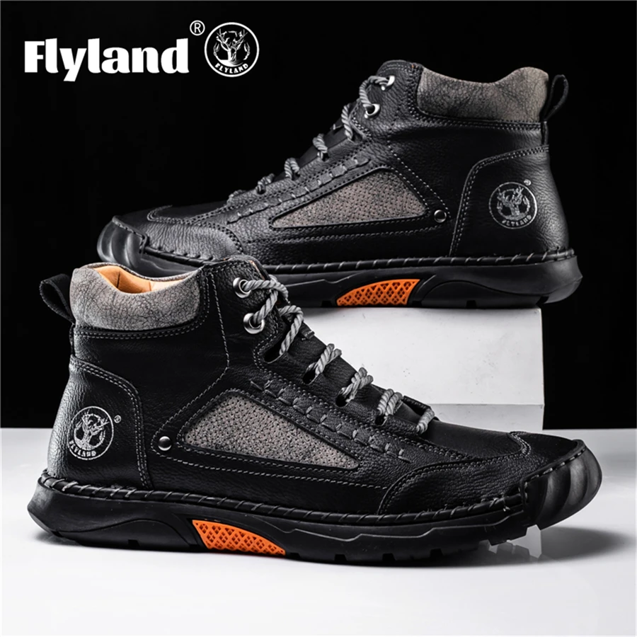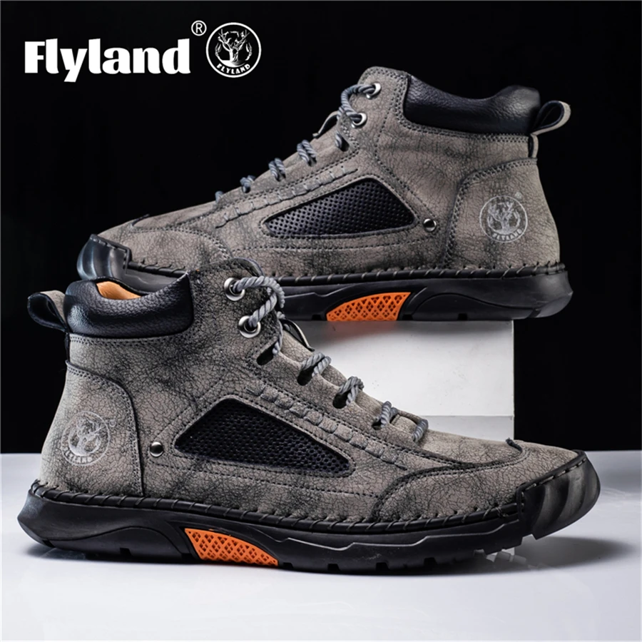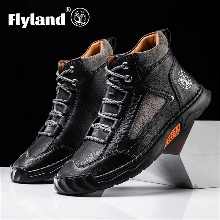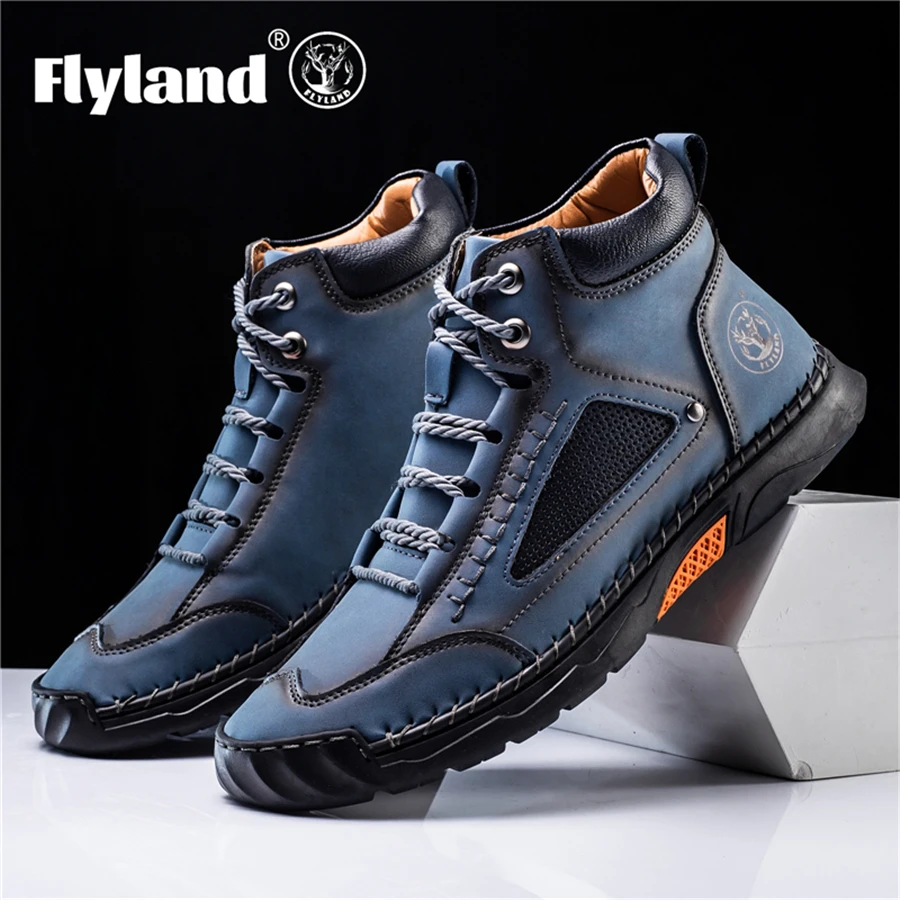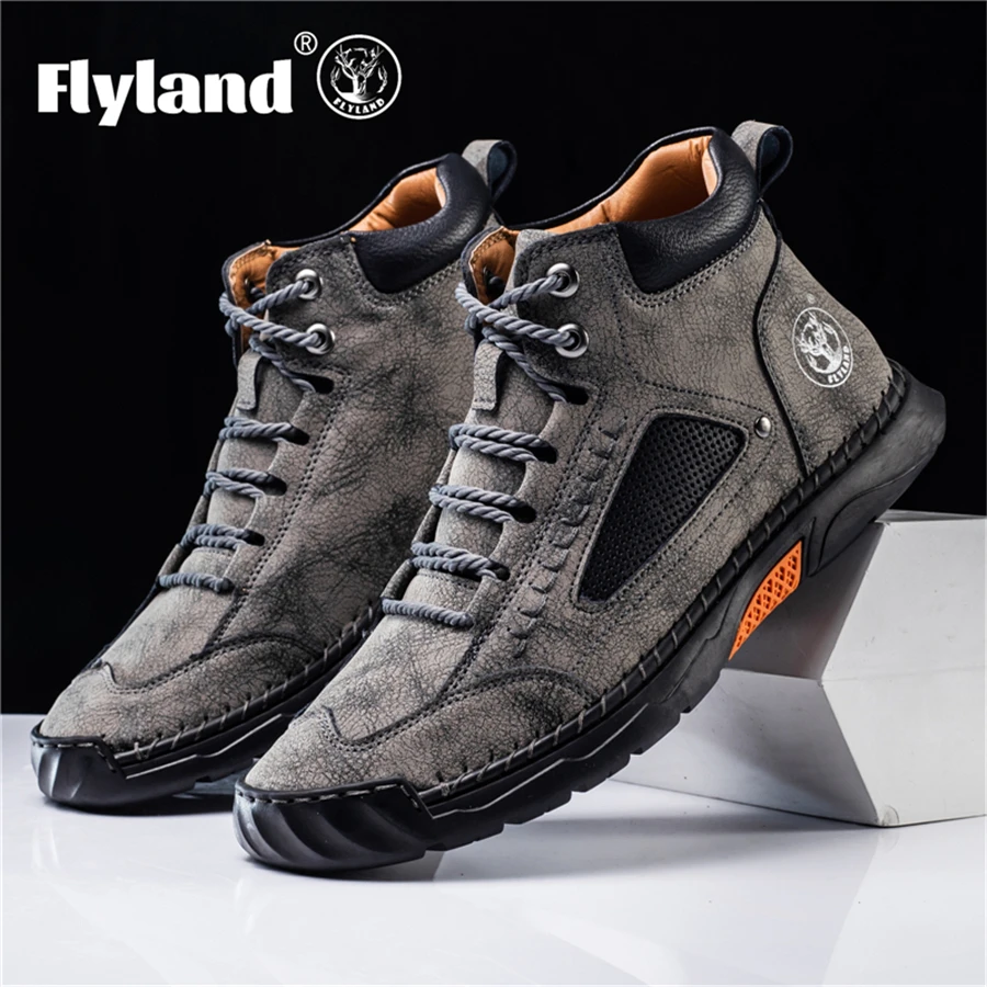 FLYLAND Stivaletti da uomo classici vintage morbidi e delicati sulla pelle, in vera pelle smerigliata, stivali casual fatti a mano