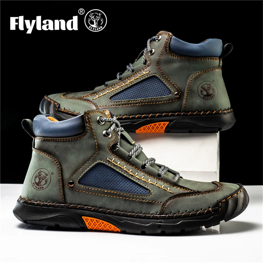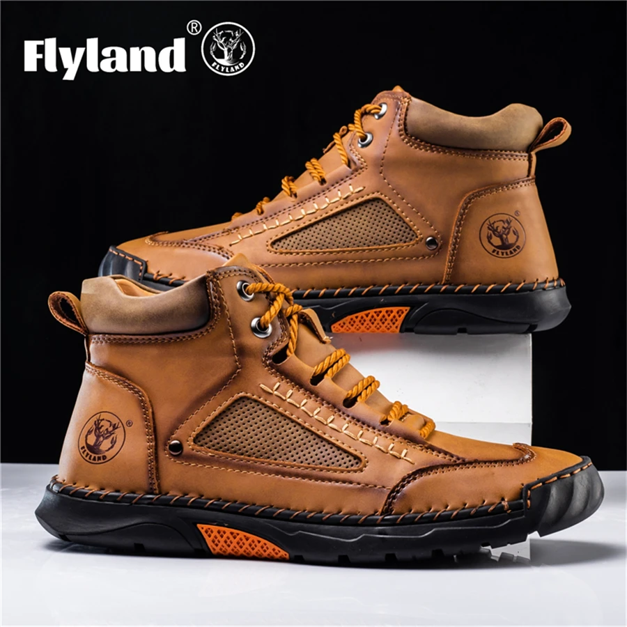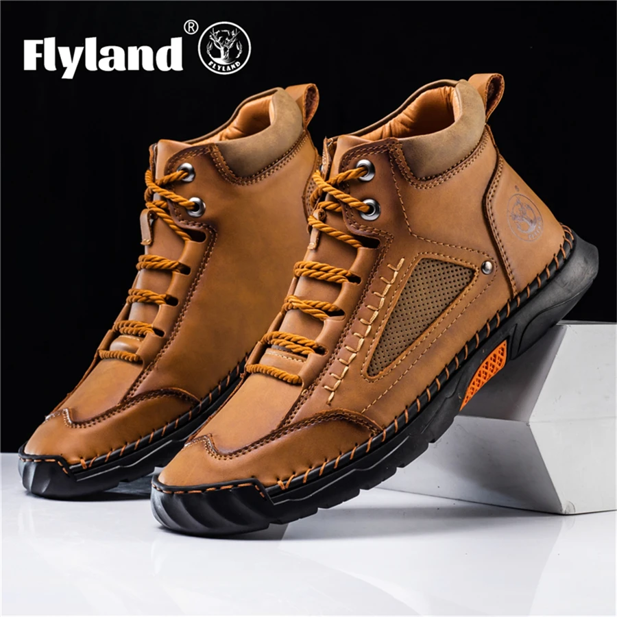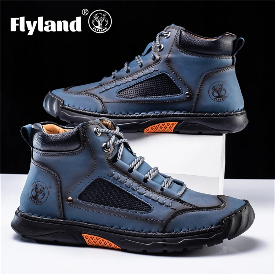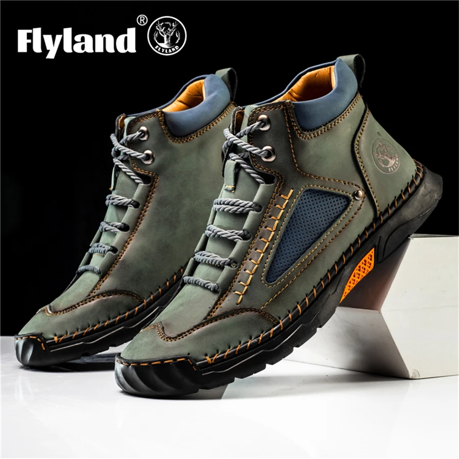 FLYLAND Stivaletti da uomo classici vintage morbidi e delicati sulla pelle, in vera pelle smerigliata, stivali casual fatti a mano