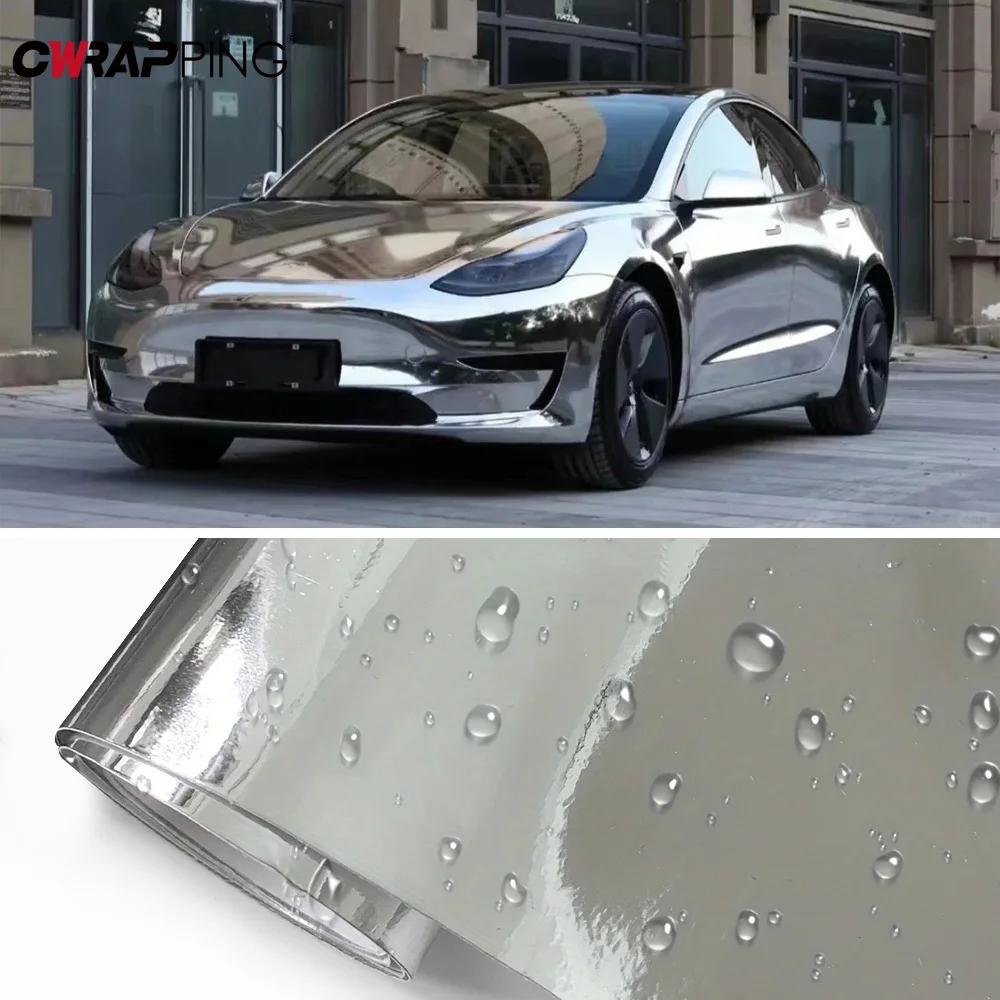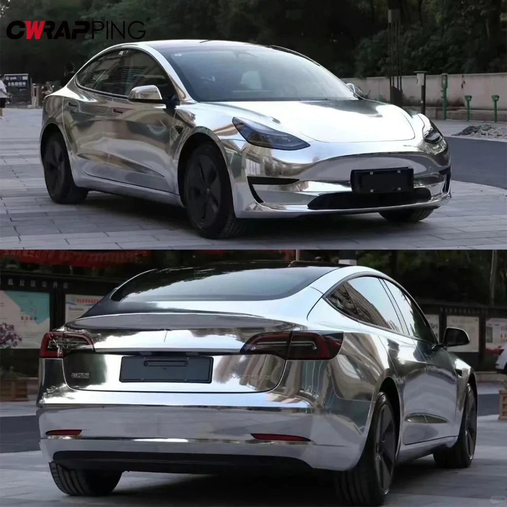 Foglio per decalcomanie senza bolle d’aria con rilascio d’aria in rotolo di pellicola adesiva in vinile argento a specchio cromato per la decorazione della carrozzeria del motociclo dell’auto e