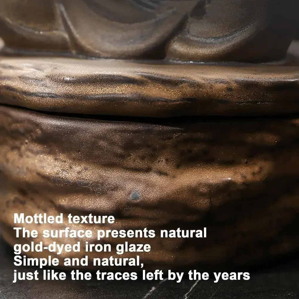 5.Vintage Style: This ceramic incense holder has a mottled texture that looks like the traces left by the years. The surface presents natural gold-dyed iron glaze that adds a touch of elegance and retro. The thick furnace wall makes it simple and natural.
