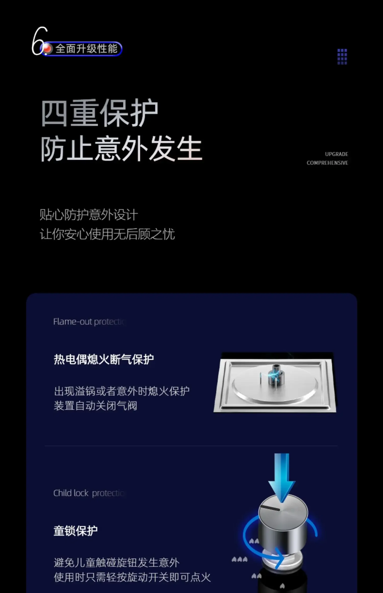 fornello a gas domestico fornello a gas naturale incorporato, gas e gas liquefatto con grande potere di fuoco e casa in affitto con fuoco feroce
