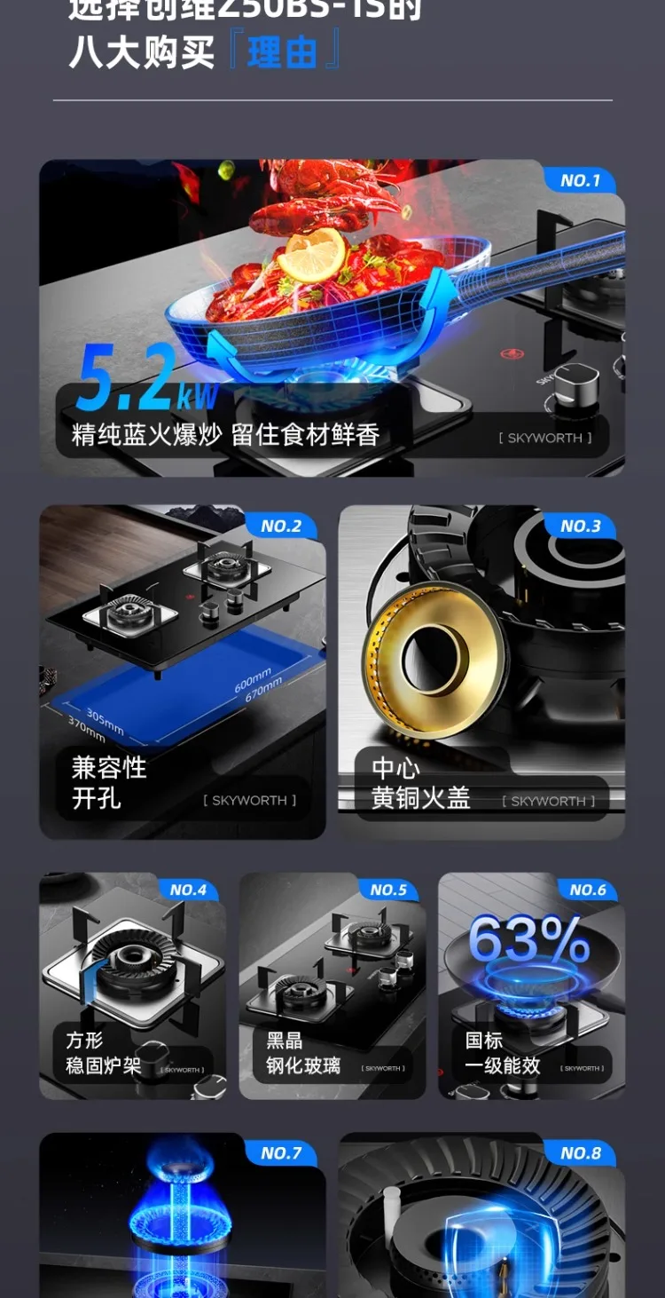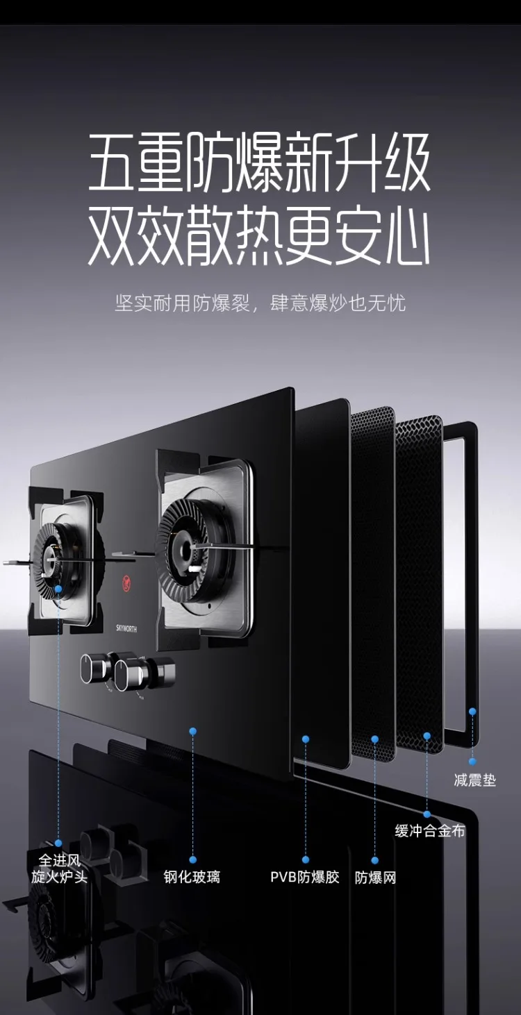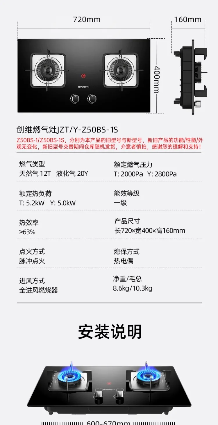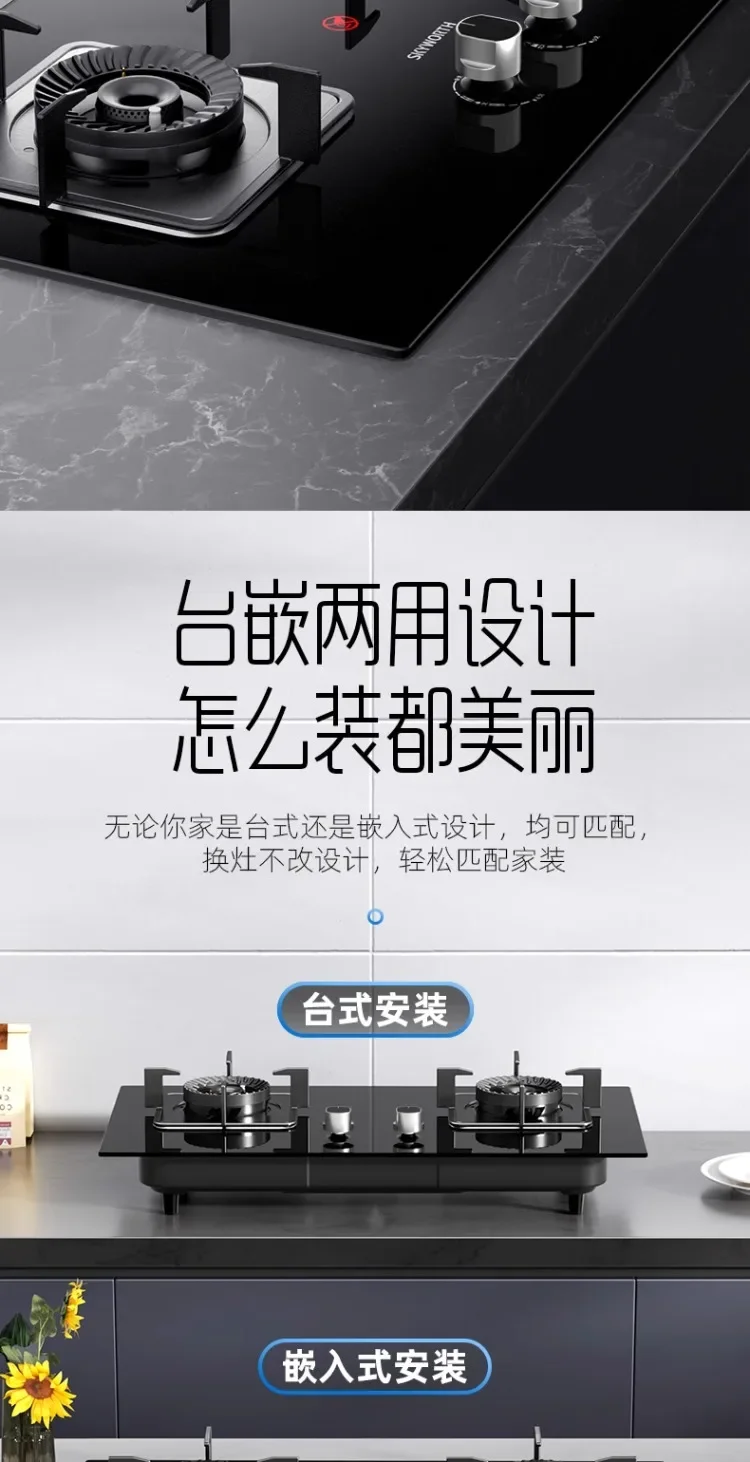 Fornello a gas Skyworth a doppio fuoco da incasso per la casa GPL Gas naturale BV