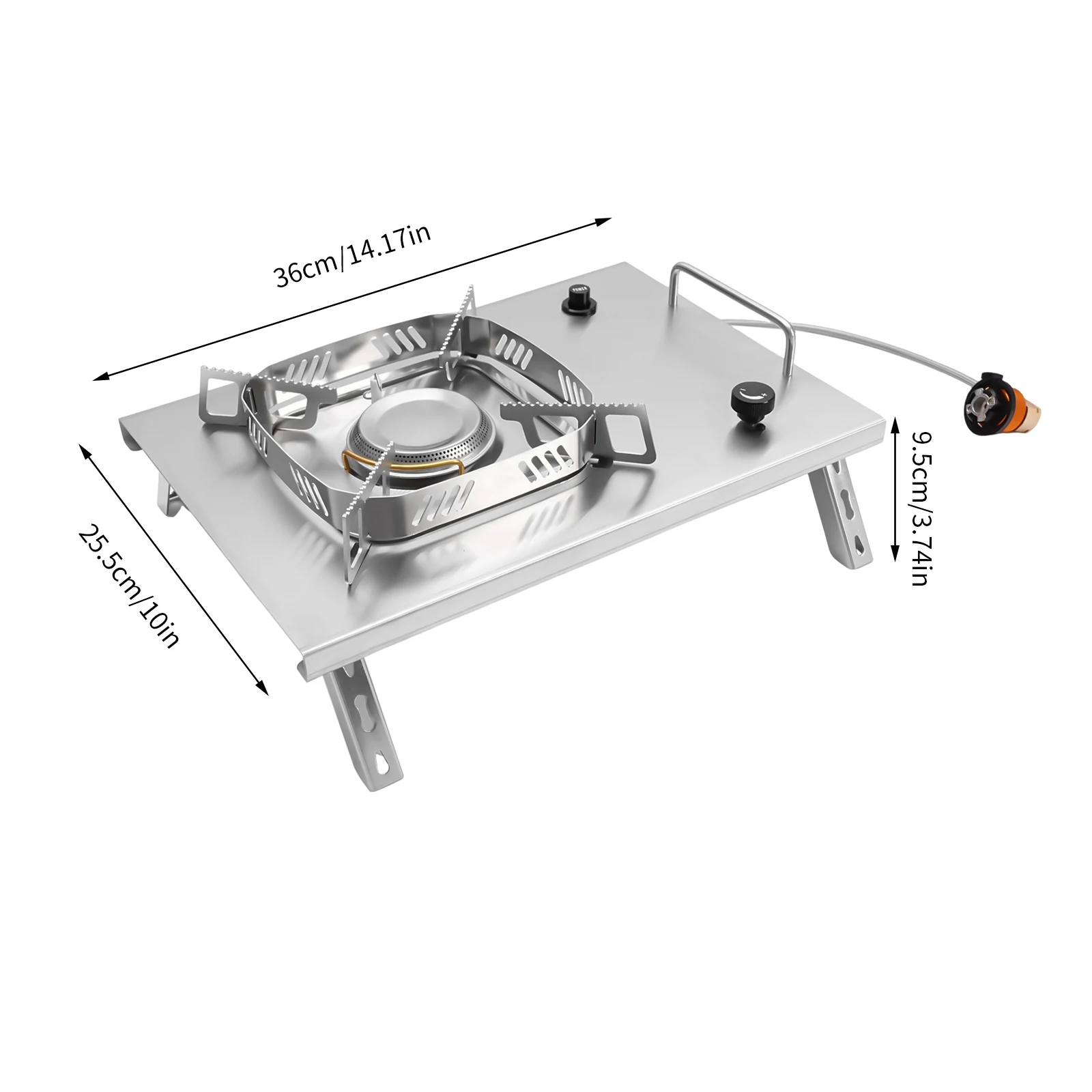 Design premuroso: è dotato di due modi di utilizzo, le gambe di supporto possono essere regolate in base alle situazioni e può essere facilmente incastonate nella tavola combinata IGT (non inclusa) dopo aver pieghevole. Inoltre, ha due tipi di conversione di connettori, che possono soddisfare le esigenze dell’utilizzo di diversi serbatoi di gas (connettore del serbatoio alpin, connettore del serbatoio del gas lungo).