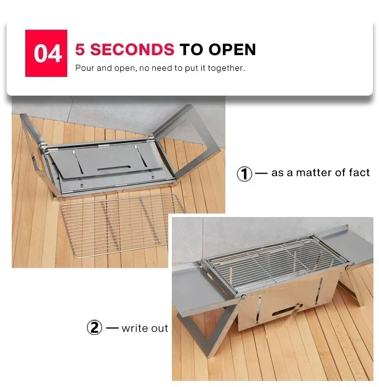 Fornello per Barbecue pieghevole da esterno in acciaio inossidabile per Barbecue a carbone per la casa e all’aperto fornello per Barbecue pieghevole portatile senza fumo